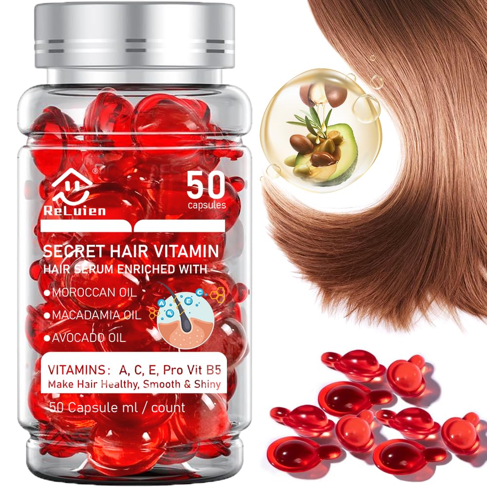 Hair Vitamin Serum Oil Capsules 50Pcs Hair Treatment Serum with Vitamins A C E Pro B5 Enriched with Moroccan Macadamia Avocado Oils No Rinse For Dry Damaged Hair Moisturizing Women & Men