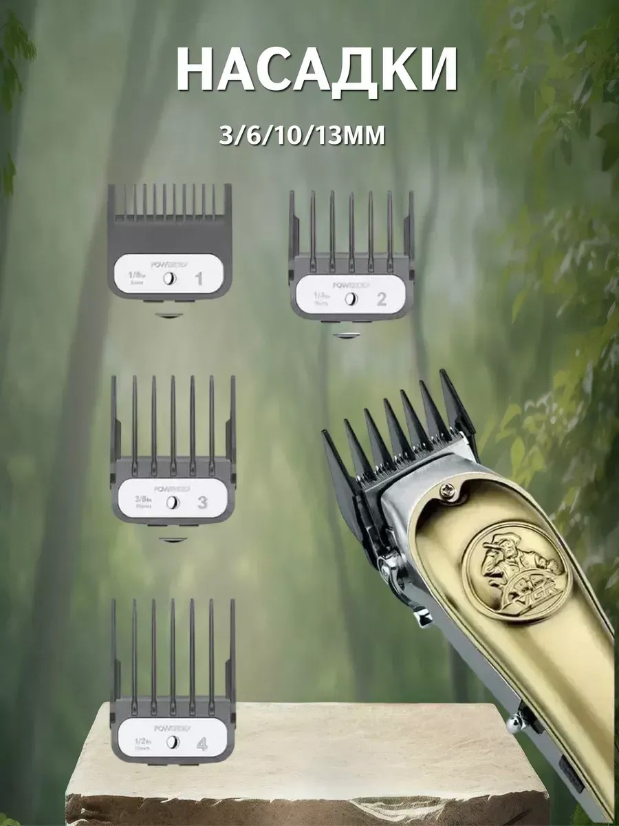 Ищете надежный инструмент для стрижки волос? Наша профессиональная машинка для стрижки волос станет вашим незаменимым помощником в создании безупречного стиля. Сменные насадки (3, 6, 9 и 12 мм) позволяют легко регулировать длину стрижки, быстро адаптируясь к вашим предпочтениям. Благодаря мощному встроенному аккумулятору, машинка работает до 250 минут без подзарядки, а зарядка через USB-кабель занимает всего 2-2,5 часа. В комплект входит защитная крышка для лезвий, щеточка для очистки и масло для смазки, что обеспечивает простой и удобный уход за устройством. Световой индикатор заряда, а также индикаторы уровня масла и скорости мотора помогают следить за состоянием машинки в реальном времени. Лезвия из нержавеющей титанової стали обеспечивают комфортное использование и предотвращают раздражение кожи. Элегантный серебристо-золотистый дизайн делает эту машинку стильным аксессуаром для как профессионалов, так и любителей. Легкий вес (всего 420 г) и компактные размеры позволяют удобно держать ее в руке, что делает машинку идеальной для домашнего и профессионального использования. С этой машинкой вы легко сможете создавать любые прически – от классических до современных стилей. Не упустите шанс улучшить свою стрижку и добавить стиль в ваш образ с помощью нашей профессиональной машинки для стрижки волос.