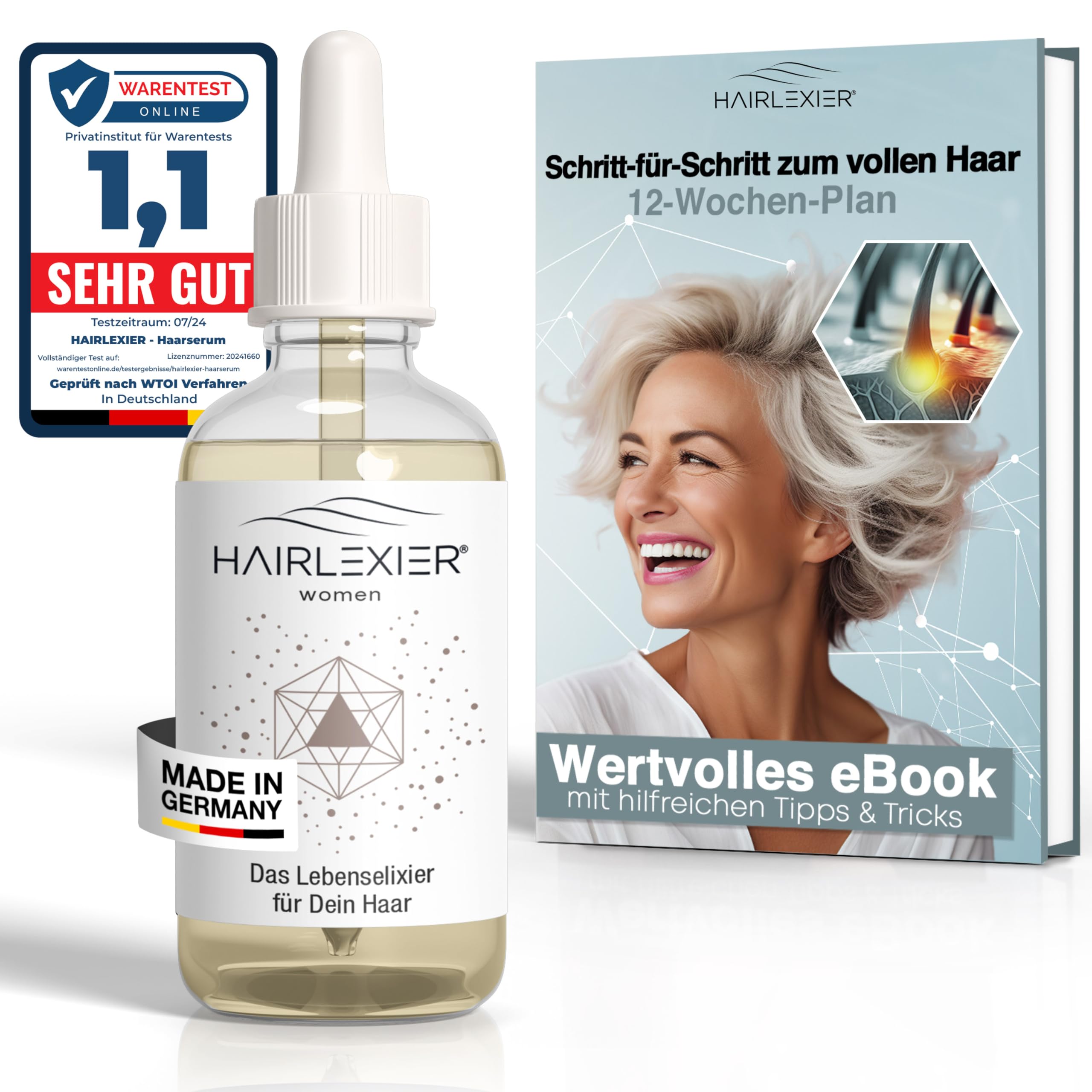 Discover the ultimate hair growth remedy specially designed for women. Our product is based on a carefully developed natural formula with powerful ingredients such as rosemary oil, argan oil, and cold-pressed castor oil. This unique combination stimulates scalp blood circulation and promotes hair growth naturally. It's easy to apply, and its formula is free of hormones and minoxidil, making it the perfect choice for women seeking a natural solution to hair loss. Our products are vegan, cruelty-free, and manufactured in Germany to strict quality standards. Whether you're experiencing hair loss or simply want to reduce premature graying, our elixir offers effective and gentle care. E-book included: Step-by-step guide to stronger hair: With your purchase, you will receive our exclusive e-book containing valuable tips, helpful information, and effective strategies for visibly stronger hair in just 12 weeks. Ideal for unlocking your hair's full potential and nourishing it with healthy, strong hair. With our hair regrowth serum, you benefit from a natural and long-lasting solution that will help you regrow full, strong hair. Trust in "Made in Germany" quality and experience the effectiveness of our product – 100 satisfaction or your money back. INSTRUCTIONS FOR USE Apply half a dropper once a day to the scalp. SAFETY WARNING Use Hairlexier hair serum only externally and avoid contact with eyes and mucous membranes. Do not use if you have a known allergy to any of the ingredients. If skin irritation or allergic reactions occur, discontinue use immediately and consult a doctor if necessary. Keep out of reach of children. See moreWorkbook included: Step-by-step guide to strong hair: With your purchase, you'll receive our exclusive e-book packed with valuable tips, helpful information, and effective strategies for visibly stronger hair in just 12 weeks. Ideal for unlocking your hair's full potential and nourishing it for health and strength. SPECIALLY FOR WOMEN: Formulated with lavender oil, this serum is perfectly suited to the needs of the female scalp, addressing hair loss and the signs of aging naturally. Anti-aging effect for hair: Thanks to concentrated nutrients and energizing essences inspired by homeopathy, the vitality of the hair roots is supported, and hair appears fuller. Powerful hair and anti-gray effect: High-quality Greyverse amino acid derivatives work in a targeted way to combat diffuse hair loss and slow down the aging process, allowing gray hair to wait longer. MINOXIDIL HORMONE FREE: 100 natural care for gentle and sustainable hair growth – without chemical additives, hormones, or harmful ingredients. NATURAL HAIR GROWTH: A combination of rosemary oil, argan oil, and castor oil promotes scalp blood circulation, strengthens hair roots, and ensures thicker, healthier hair.Huile de Croissance pour Cheveux - Romarin, Ricin et Lavande - Teinture Naturelle Contre la Chute Diffuse et les Cheveux Gris Femmes.DESCRIPTION DU PRODUIT DESCRIPTION DU PRODUIT Découvrez le remède ultime pour la croissance des cheveux spécialement conçu pour les femmes. Notre produit est basé sur une formule naturelle soigneusement développée avec des ingrédients puissants tels que l'huile de romarin, l'huile d'argan et l'huile de ricin pressée à froid. Cette combinaison unique stimule la circulation sanguine du cuir chevelu et favorise la croissance des cheveux de manière naturelle. Son application est simple, et sa formule est exempte d'hormones et de minoxidil, ce qui en fait le choix parfait pour les femmes à la recherche d'une solution naturelle pour la perte de cheveux. Nos produits sont végétaliens, sans cruauté envers les animaux et sont fabriqués en Allemagne selon des normes de qualité strictes. Que vous souffriez de perte de cheveux ou que vous souhaitiez réduire le gris prématuré des cheveux, notre élixir offre un soin efficace et doux. E-book inclus : étape par étape pour obtenir des cheveux plus forts : lors de l'achat, vous recevrez notre e-book exclusif contenant des conseils précieux, des informations utiles et des stratégies efficaces pour des cheveux visiblement plus forts en seulement 12 semaines. Idéal pour libérer tout le potentiel de vos cheveux et les nourrir sains et forts. Avec notre repousse des cheveux, vous bénéficiez d'une solution naturelle et durable qui vous aidera à repousser vos cheveux pleins et forts. Faites confiance à la qualité « Made in Germany » et laissez-vous convaincre par l'efficacité de notre produit – Satisfaction à 100 ou remboursement MODE D'EMPLOI Appliquer une demi-pipette une fois par jour sur le cuir chevelu. AVERTISSEMENT DE SÉCURITÉ Utilisez le sérum capillaire Hairlexier uniquement à l'extérieur et évitez tout contact avec les yeux et les muqueuses. Ne pas utiliser en cas d'allergie connue à l'un des ingrédients. En cas d'irritation cutanée ou de réactions allergiques, cesser immédiatement d'utiliser et si nécessaire. consulter un médecin. Tenir hors de la portée des enfants. Voir plusLivre d'exercices inclus : étape par étape pour des cheveux forts : lors de l'achat, vous recevrez notre e-book exclusif avec des conseils précieux, des informations utiles et des stratégies efficaces pour des cheveux visiblement plus forts en seulement 12 semaines. Idéal pour libérer tout le potentiel de vos cheveux et les nourrir sains et forts. SPÉCIAL POUR LES FEMMES : conçu avec de l'huile de lavande, ce sérum est parfaitement adapté aux besoins du cuir chevelu féminin pour faire face à la perte de cheveux et au vieillissement des cheveux de manière naturelle. Effet anti-âge pour les cheveux : grâce à un apport nutritif concentré et des essences énergisantes inspirées de l'homéopathie, la vitalité des racines des cheveux est soutenue et les cheveux sont plus volumineux. Cheveux puissants et effet anti-gris : les dérivés d'acides aminés Greyverse et de haute qualité agissent de manière c