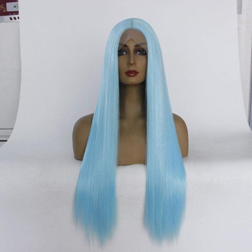 Hairpieces Natural Silky Long Straight Hair Lace Front Wig Heat Resistant Fiber Synthetic Hair With Middle Paring For Blue Ladies Daily Cosplay Halloween Party 26 in