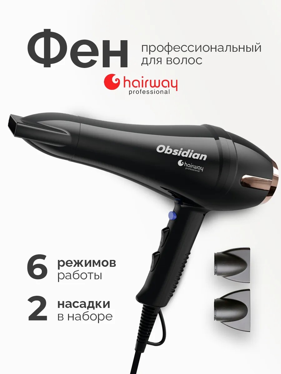 Профессиональный фен для волос Hairway Obsidian Ionic 2300W — надёжный инструмент для сушки и укладки в домашних и салонных условиях
