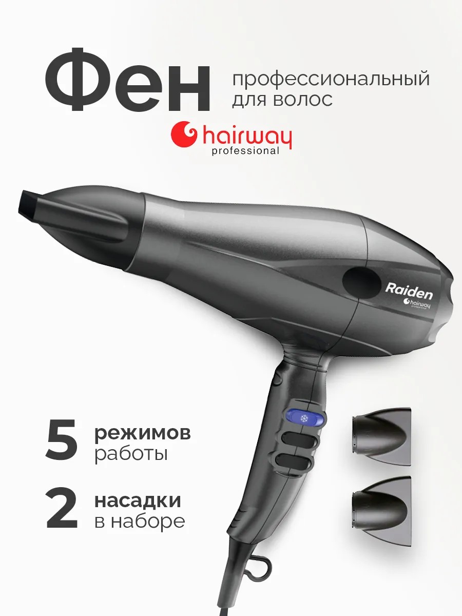Профессиональный фен для волос Hairway Raiden c 2400W — надёжный инструмент для сушки и укладки в домашних и салонных условиях