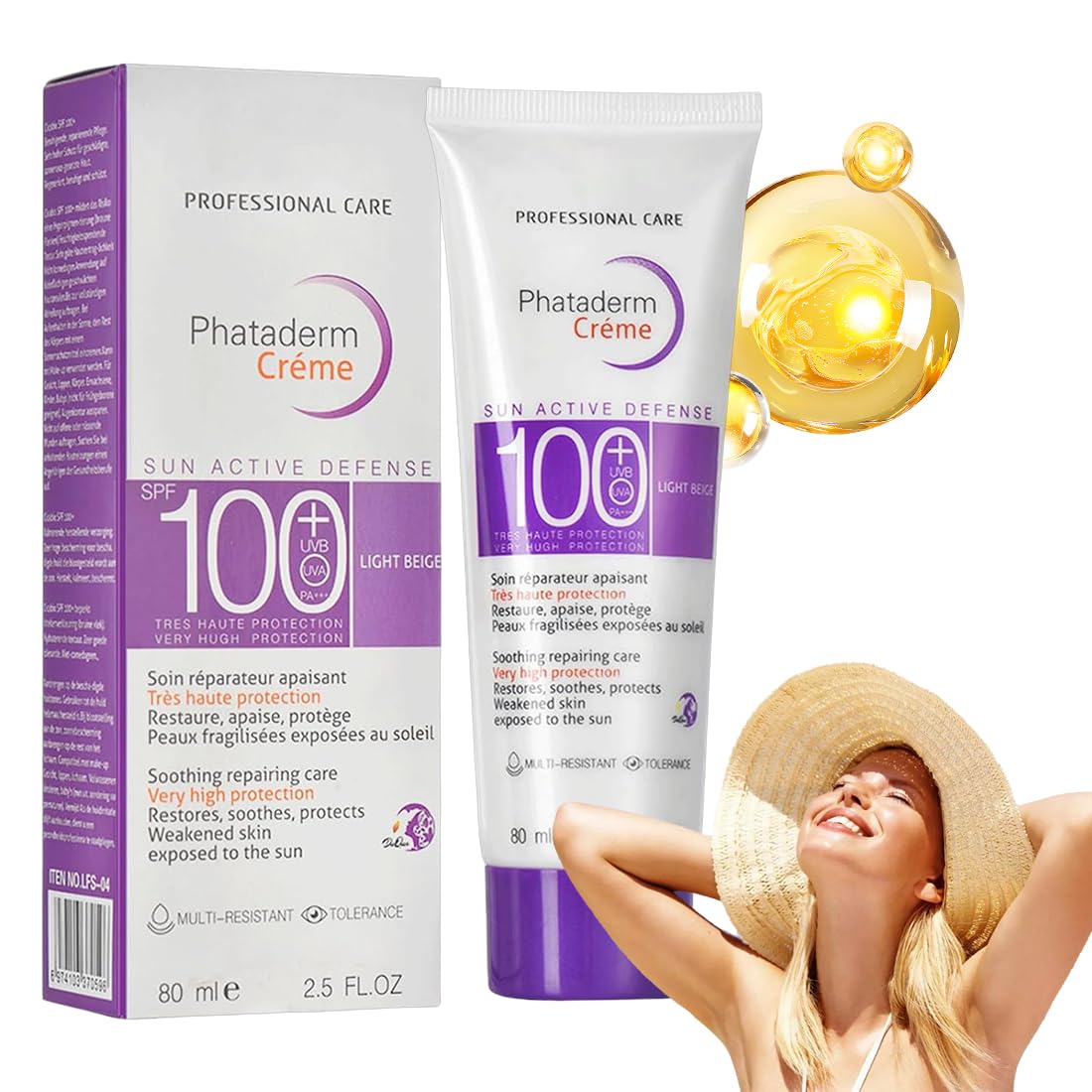SPF 100 Facial Sunscreen, SPF 100, Anti-Aging Sunscreen, Lightweight, Non-Greasy, Full Body Sunscreen with UV Protection, Waterproof, Soothing Sunscreen (1 piece) DIRECTIONS Apply generously 15 minutes before sun exposure. Reapply after 80 minutes of swimming or sweating and every 2 hours. SAFETY WARNING No See moreMultifunctional: This SPF 100 facial sunscreen is ideal for sports and outdoor activities, protecting against harmful UV rays. It's lightweight, long-lasting, and won't peel off. How to use: After cleansing and moisturizing, apply the SPF 100 facial sunscreen evenly to the areas of your face and body exposed to the sun. It's recommended to apply it 15 to 30 minutes before going outside and reapply every 2 to 3 hours if needed, especially after swimming, sweating, or prolonged outdoor activities. This will help prevent your skin from tanning. Daily sun protection: This SPF 100 sunscreen has a refreshing, non-sticky, lightweight, and breathable texture and antiperspirant properties. It can maintain effective sun protection even with excessive sweating. It can be used on the face, neck, arms, and other parts of the body. It's the top choice for daily sun protection and outdoor activities. Whether at the beach, on your bike, or at work, it's your reliable companion everywhere, protecting you in style. Anti-aging sunscreen: This SPF 100 facial sunscreen protects against UV rays and prevents discoloration, sunspots, and pigmentation. SPF 100 slows down the skin's aging process, keeping it youthful. Your complexion remains even. SUNSCREEN: This SPF 100 facial sunscreen offers excellent UV protection, blocking over 99 of UV rays and safeguarding healthy skin. It's an essential sunscreen for summer and everyday use. Make your skin more radiant.Crème solaire pour le visage SPF 100, SPF 100, protection solaire anti-âge, légère, non grasse, pour tout le corps avec protection UV, imperméable, protection solaire apaisante (1 pièce) Modèle violetDESCRIPTION DU PRODUIT DESCRIPTION DU PRODUIT Crème solaire pour le visage SPF 100, SPF 100, protection solaire anti-âge, légère, non grasse, pour tout le corps avec protection UV, imperméable, protection solaire apaisante (1 pièce) MODE D'EMPLOI Appliquer généreusement 15 minutes avant l'exposition au soleil. Réappliquer après 80 minutes de natation ou de transpiration et toutes les 2 heures. AVERTISSEMENT DE SÉCURITÉ non Voir plusMultifonction : cette crème solaire visage SPF100 est idéale pour les sports et les activités de plein air et protège contre les rayons UV nocifs. Elle est légère, durable et ne se décolle pas. Utilisation : après le nettoyage et l'humidification, appliquez la crème solaire visage SPF100 uniformément sur les parties du visage et du corps exposées au soleil. Il est recommandé d'appliquer 15 à 30 minutes avant de sortir et de réappliquer toutes les 2 à 3 heures si nécessaire, en particulier après la baignade, la transpiration ou les activités de plein air prolongées. De cette façon, vous ne pouvez pas garder votre peau sujette au bronzage. Protection solaire quotidienne : cette crème solaire SPF 100 a une texture rafraîchissante, non collante, légère et respirante, et possède des propriétés anti-transpirantes. Il peut maintenir un effet solaire efficace même en cas de transpiration excessive. Elle peut être utilisée sur le visage, le cou, les bras et d'autres parties du corps. C'est le premier choix pour la protection solaire quotidienne et les activités de plein air. Que ce soit à la plage, au vélo ou au travail, c'est partout votre compagnon fiable qui vous protège avec style. Crème solaire anti-âge : la crème solaire visage SPF100 protège des rayons UV et prévient la décoloration, les taches solaires et la pigmentation. La crème solaire SPF 100 ralentit le processus de vieillissement de la peau et la rend jeune. Votre teint reste homogène. CREME SOLAIRE : la crème solaire visage SPF100 offre une excellente protection UV qui bloque plus de 99 des rayons UV et protège la santé de la peau. C'est une protection solaire indispensable pour l'été et un usage quotidien. Rendez la peau plus radieuse.