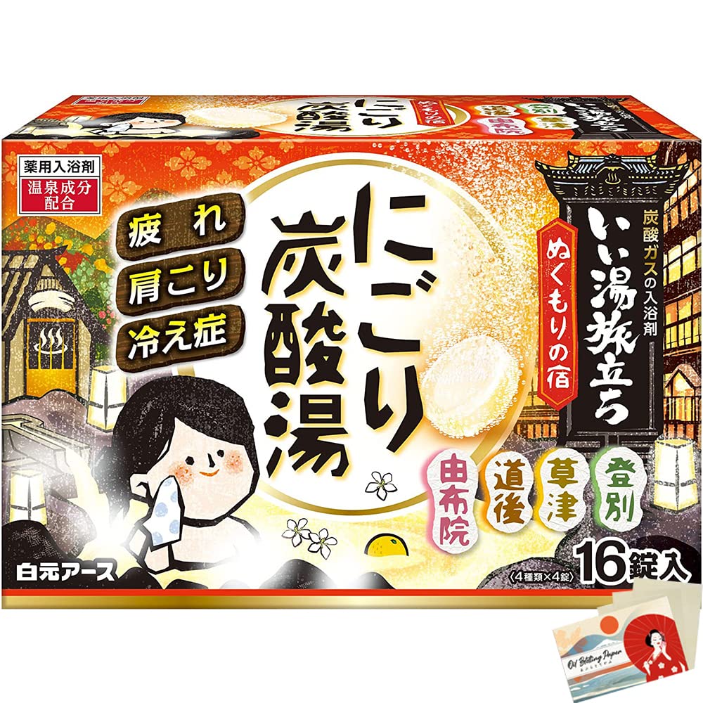 Hakugen Earth Japanese Bath Salts Iiyu Tabidachi Nigori - Yu Nukumori - Yu Relaxation Bath Roman Style 4 x 16 packs – Blotting Paper Set Hokkaido, Noboribetsu: the scent of cypress enveloping the laceside (milky green water) Gunma Kusatsu: the scent of yuzu growing in the mountains (milky yellow water) Ehime Dogo: the scent of osmanthus in full bloom (warm milky-orange water) Oita Yufuin: plum fragrance with a sweet and gentle scent (warm pink milk)Includes 16 packs (4 types x 4 tablets). Carbon dioxide enhances the effect of a warm bath, promotes blood circulation, is effective for improving circulation in the buttocks, sagging shoulders, and back pain, and relieves the day's fatigue. This bath salt set lets you enjoy the feeling of a warm spring with four kinds of warm spring scents and colors. Ideal for: recovery from cold fatigue, bare shoulders, discomfort, storms, roughness, acne, back pain, nerve pain, hemorrhoids, rheumatism, cracks, and rashes. Roman Style Bath Bomb. Japanese Bath Salt. Blotting Paper Set.Hakugen Earth Sels de bain japonais Iiyu Tabidachi Nigori -Yu Nukumori-Yu Relaxation Bath Bath Style romain 4 x 16 paquets – Set de papier blotting Hokkaido, Noboribetsu : le parfum du cyprès qui enveloppe le laceside (eau verte laiteuse) Gunma Kusatsu. : Le parfum de yuzu qui pousse dans les montagnes (eau jaune laiteuse) Ehime Dogo : le parfum d'osmanthus en pleine floraison (eau chaude laitier-orange) Oita Yufuin : parfum prune avec un parfum doux et doux (lait rose chaud)Comprend 16 paquets (4 types x 4 tablettes). Le dioxyde de carbone améliore l'effet du bain chaud, favorise la circulation sanguine, est efficace pour la circulation des fesses, les épaules affaissées et la douleur dorsale, et soulage la fatigue de la journée. C'est un sel de bain que vous pouvez profiter de la sensation d'un printemps chaud avec quatre sortes de scents et de couleurs printanières chaudes. Idéal pour : récupération de la fatigue froide, épaules dénudées, nuisances, tempêtes, rough, acné, douleur dorsale, douleur nerveuse, hémorroïdes, rhumatismes, crack, rash,. Bath Roman Style Bath Bomb. Sel de bain japonais. Set de papier blotting.Hakugen Earth Lot de 4 paquets de 16 sels de bain japonais Iiyu Tabidachi Nigori Yu Nukumori-Yu - Style romain - 4 parfums