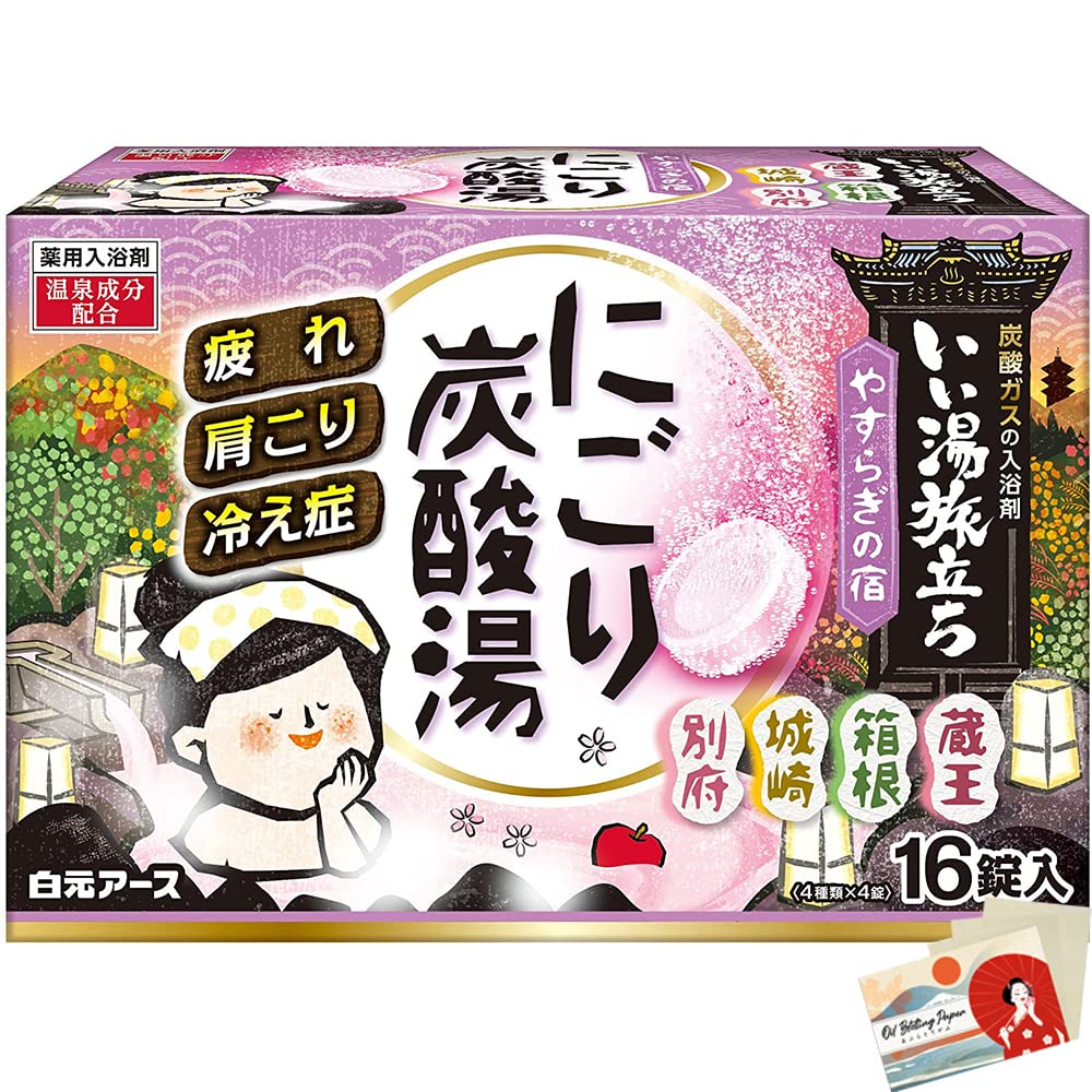 Hakugen Earth Japanese Bath Salts Iiyu Tabidachi Nigori Yu Yasuragi-Yu Relaxation Bath Roman Style 4 x 16 packs – Set of 16 blotting paper sheets Yamagata Zao, the scent of apples growing from the ground (warm milky red water), Kanagawa Hakone, the scent of the forest surrounding the foot of the mountain (milky green water), Hyogo Kinosaki, the scent of fresh pear (milky yellow water), Oita Beppu, a delightful cherry blossom scent (warm pink milk), includes 16 packs (4 types x 4 tablets)