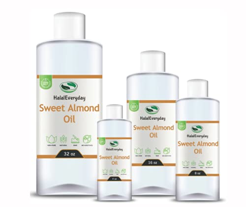 HalalEveryDay Sweet Almond Oil 8 Oz | 100% Pure & Cold Pressed | Premium Therapeutic Moisturizing Carrier Oil | Aromatherapy | Massage Oil | Skin & Hair | Non- GMO & Vegan