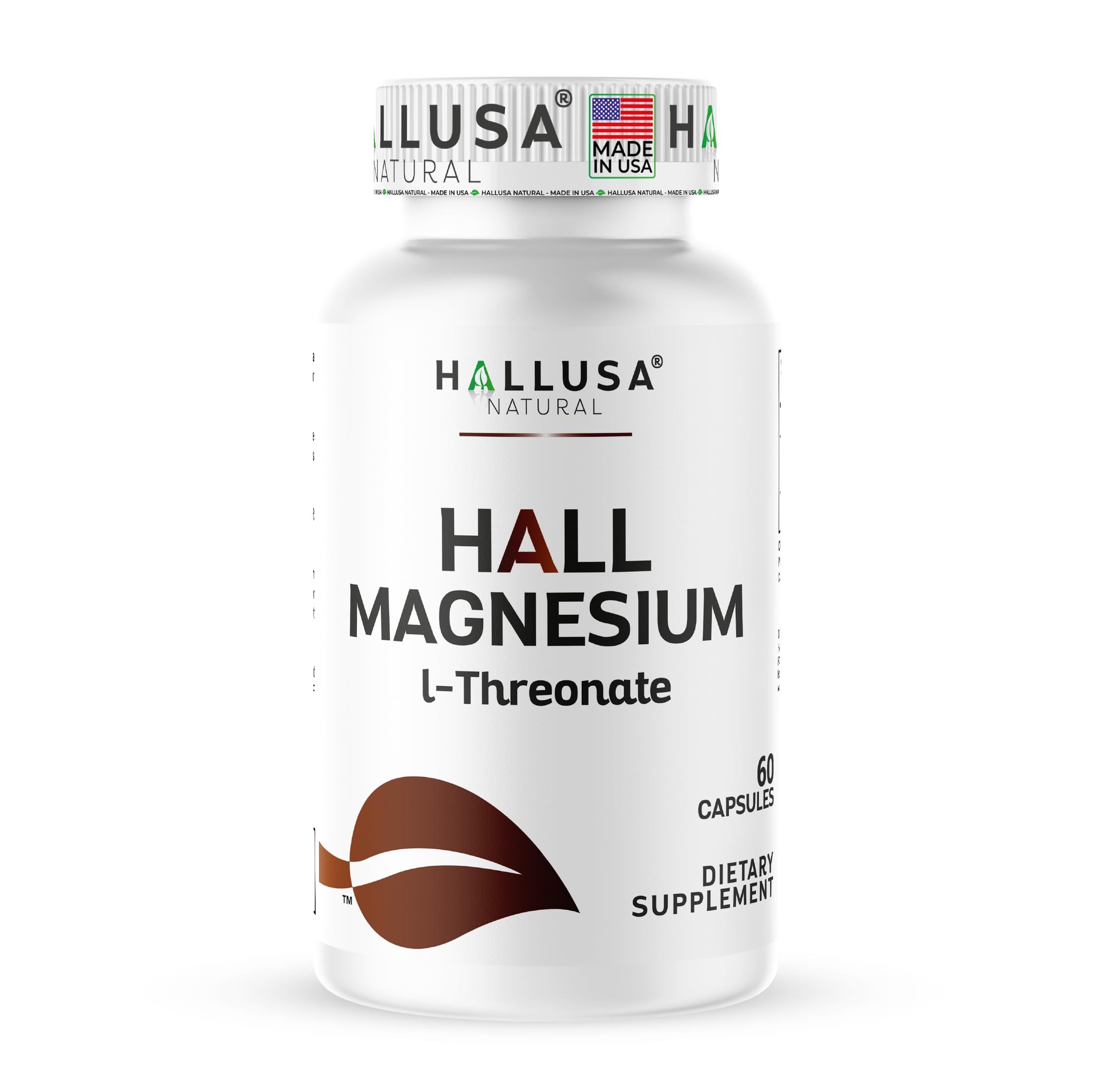 Hall Magnesium L-Threonate Capsules 2000mg - Cognitive Support Supplement for Brain Health & Memory - Mental Clarity Focus & Sleep Aid - Non GMO - Gluten Free - 60 Capsules Hallusa Natural 60 Count (Pack of 1)