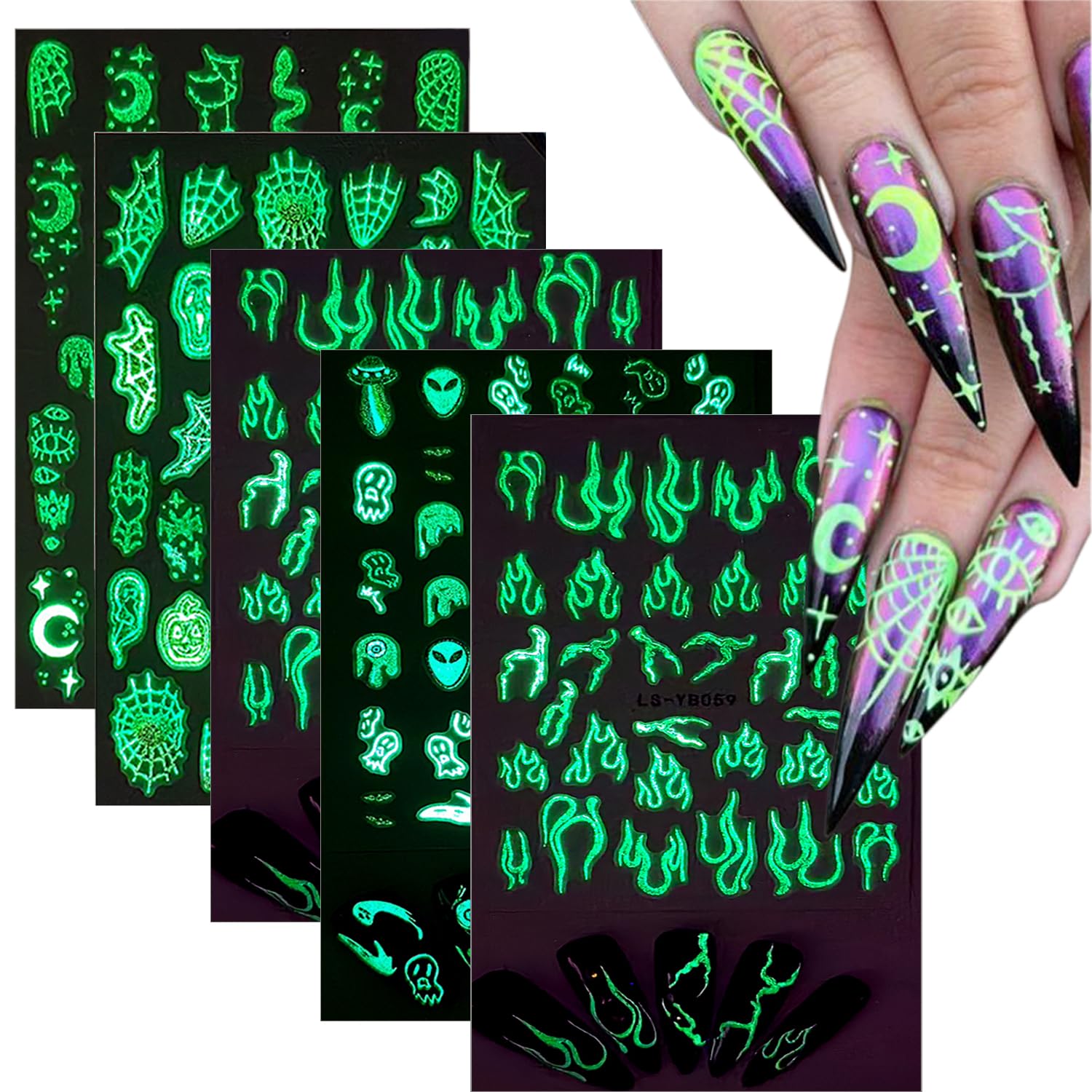 Product Introduction: This set of Halloween nail stickers can showcase different nail art effects when used separately during the day and night, making it particularly suitable for nail design during Halloween parties. Our nail decals stickers are designed with various Halloween elements, such as spider, witch, pumpkin, bat, ghost, candy, cat and more, ideal for decorating your nails and other personal items in Halloween, suitable for Halloween party. Nail sticker can be used on natural, false, gel, acrylic or stick on nails. How to use: 1. Apply the nail polish color you like as the base color, let it dry completely. 2. Choose the right size and the pattern you want, compare with the nails. 3. Use the sticker tweezers remove the stickers, and use the sculpture pen to press the nail sticker on nail. 4. Apply the clear topcoat and wait till dry. 5. Finish, you design the pattern by yourself, enjoy the pretty nails. Package Include: 5 sheets Halloween adhesive nail stickers decals?? Perfect Halloween Gift: Halloween self-adhesive nail stickers are the best gift for family, friends, neighbors, nail lovers during Halloween, you can also DIY Halloween nail art and crafts with them to spend a fun Halloween together. ?? Safe Material: The Halloween elements nail stickers are made of non-toxic material, will not cause harm to your nails or body, you can use it safely Both children and adults can use it with confidence. ?? Easy to Use: With self-adhesive design, this Halloween nail sticker is easy to decorate your nail. Just stick them on your nails, and just peel off them if you want to remove them. You can also use nail gel to cover to make the stickers last longer. ?? Glow in the Dark: These Halloween nail stickers are different during the day and night, and glow in the dark to make your nails look cool and make you stand out from the crowd. (After strong light exposure, the luminous effect of nail stickers will be more obvious). ?? Package Included: You will get 5 sheets Halloween nail decal, many Halloween elements patterns such as spider webs, pumpkins, skulls, bats, witches, ghost, eye, cats and so on. So many choices that will meet your nail art decorations needs for Halloween party.