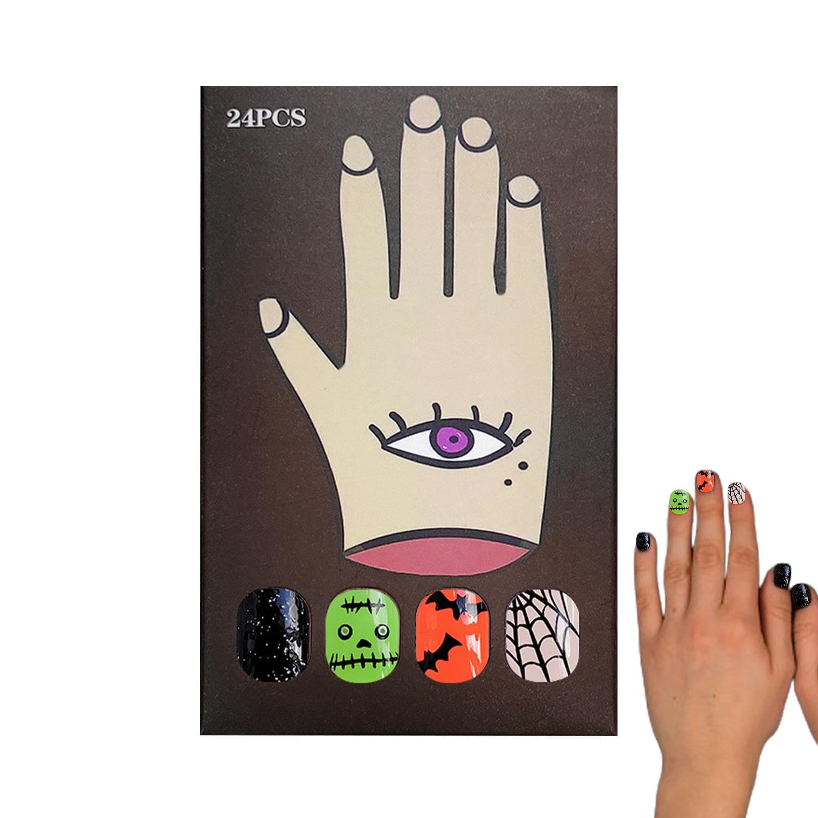 Transform your nails with our Halloween-themed press-on nails. Instantly have a long-lasting, glossy effect manicure with various sizes to fit sisters, girlfriends, wives, and mothers. Perfect for adding a touch of spook to any outfit without introducing any fuss. Get the perfect Halloween nails easily! Product name: Halloween wearable nail patches Weight: 20g Product size: (approx.)12x7cm/4.72x2.76 inches : artificial fake nails Warm tips: 1. Due to the color temperature of the display, camera, ambient light and photography skills, some pictures of some products may have slight color differences, the color is subject to the actual product! 2. Due to different manual measurements, please allow slight size differences List: 1 box * cute halloween nails( )
