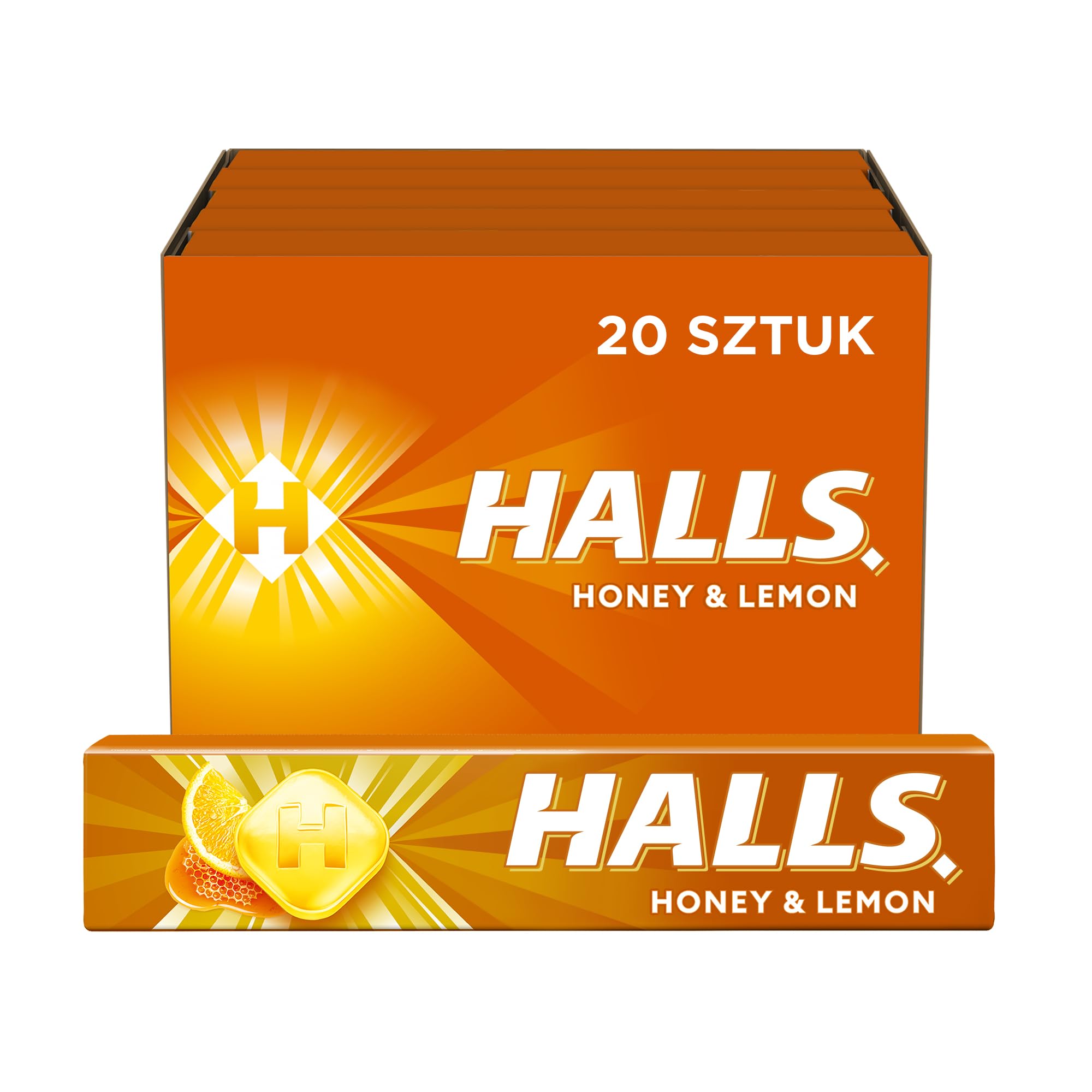 Halls Honey Lemon combines the natural sweetness of honey with the refreshing taste of lemon and the signature menthol kick that has made Halls world-famous. The drops contain 4 real honey and eucalyptus oil and provide a pleasant, soothing sensation in the throat. Made with premium ingredients such as sugar, glucose syrup, honey, eucalyptus oil, menthol, organic acids (E270, E330), and colorings (E160a), an aromatic and intense flavor is created. Each roll fits easily in a bag and is ideal for on-the-go use. The convenient pack of 20 rolls (33.5g each) is perfect for everyday use, feeding the family, or as a supply for work and the car. INSTRUCTIONS FOR USE Please open the carton carefully and enjoy the lozenges. Ensure that young children are supervised during consumption to prevent choking. Please note that the sweets may contain small pieces that may not be suitable for young children.