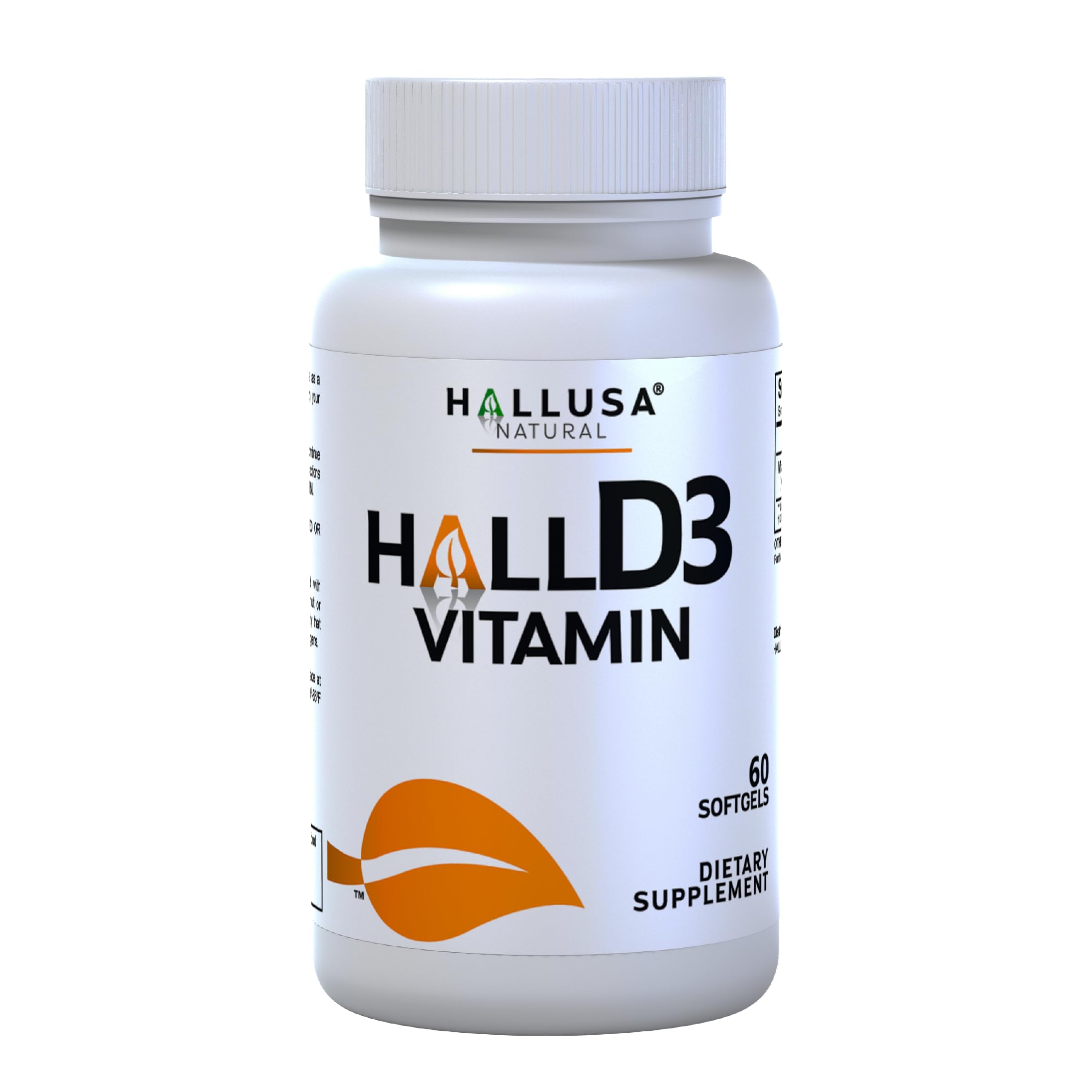 Hallusa Natural Vitamin D3 Softgels 2000 IU Daily Immune Defense Bone & Teeth Support Calcium Absorption Mood & Muscle Function - 60 Day Supply