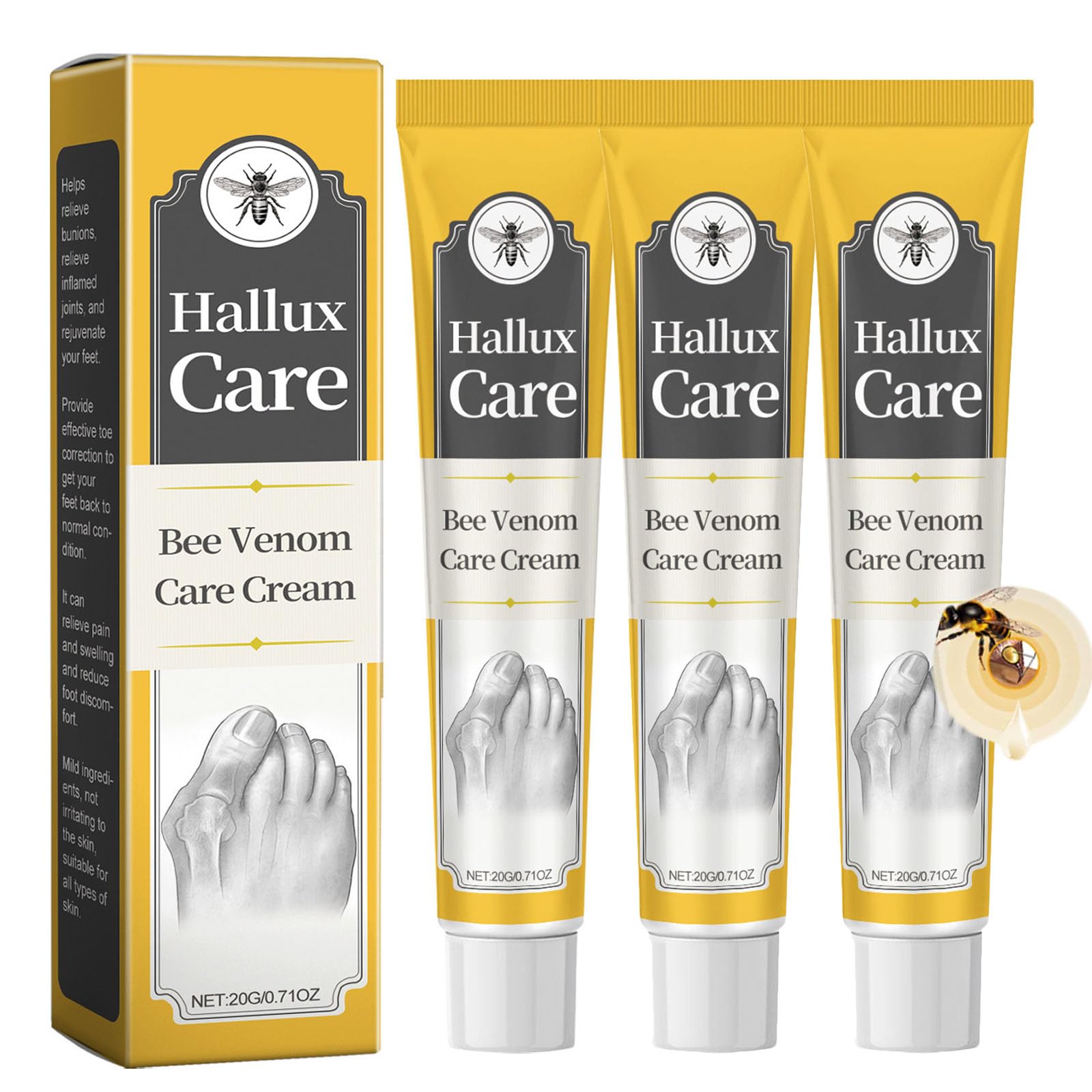 Content: 20g 0.71OZ You will get 3Pcs HalluxWell BeeVenom Creams