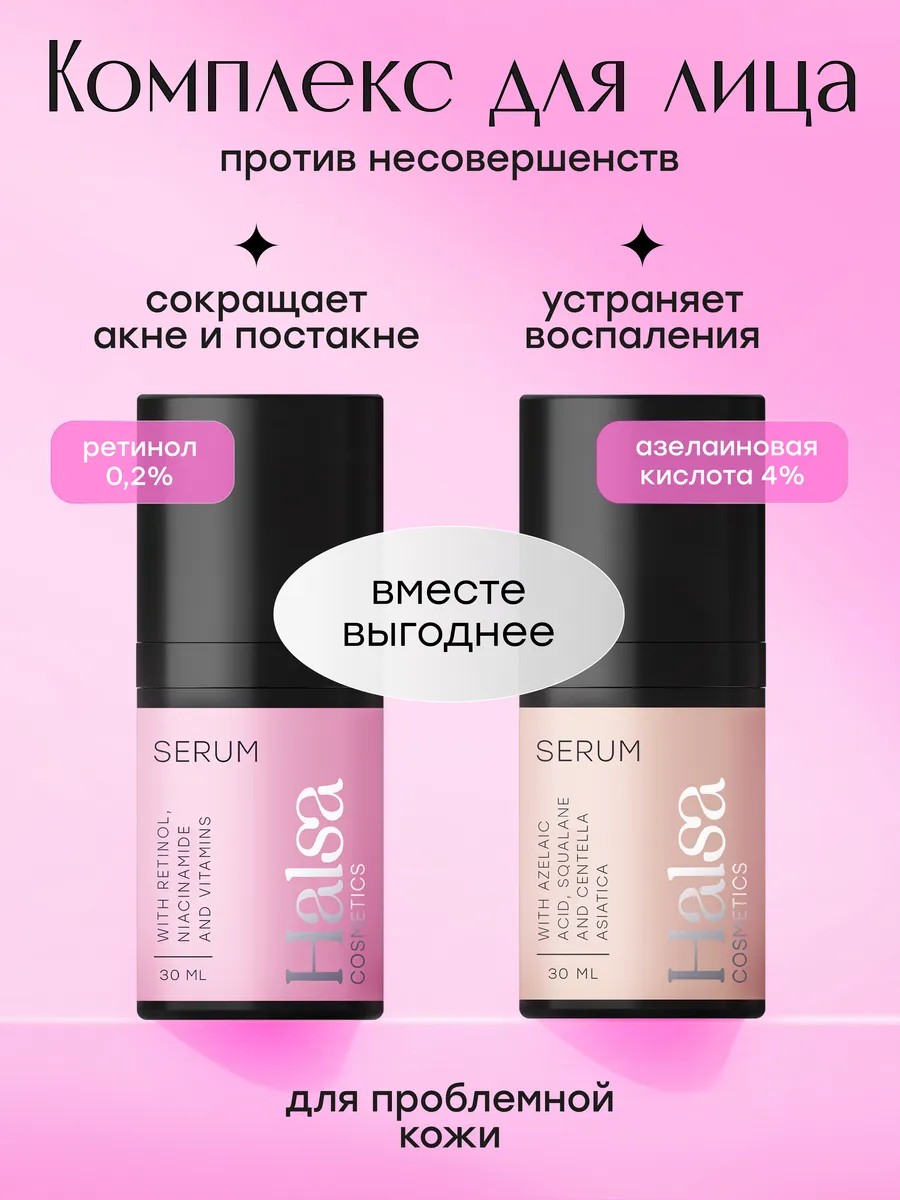 Halsa products are designed for daily home care for problematic oily and combination skin. They reduce inflammation and the appearance of age spots. The set includes a pore-tightening and tone-evening acid and retinol cream-serum.