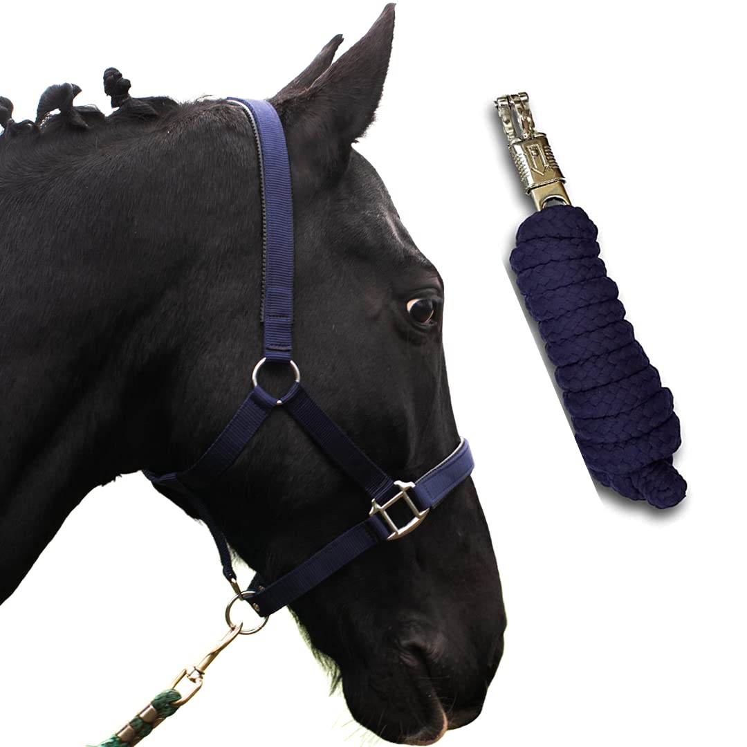 Halfter für Pferde mit Strick | Führstrick Pferd Halfter | Halfter Pony, Vollblut, Full, X-Full mit Strick (Blau, Warmblut) Blau Warmblut