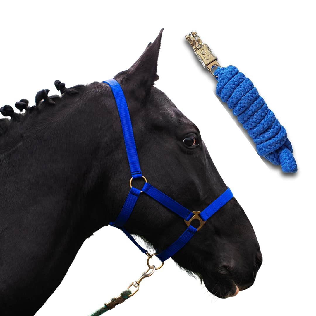 Halfter für Pferde mit Strick | Führstrick Pferd mit Halfter | Halfter Shetty, Pony, Vollblut, Full, X-Full mit Strick (Royalblau, Cob) Royalblau Cob