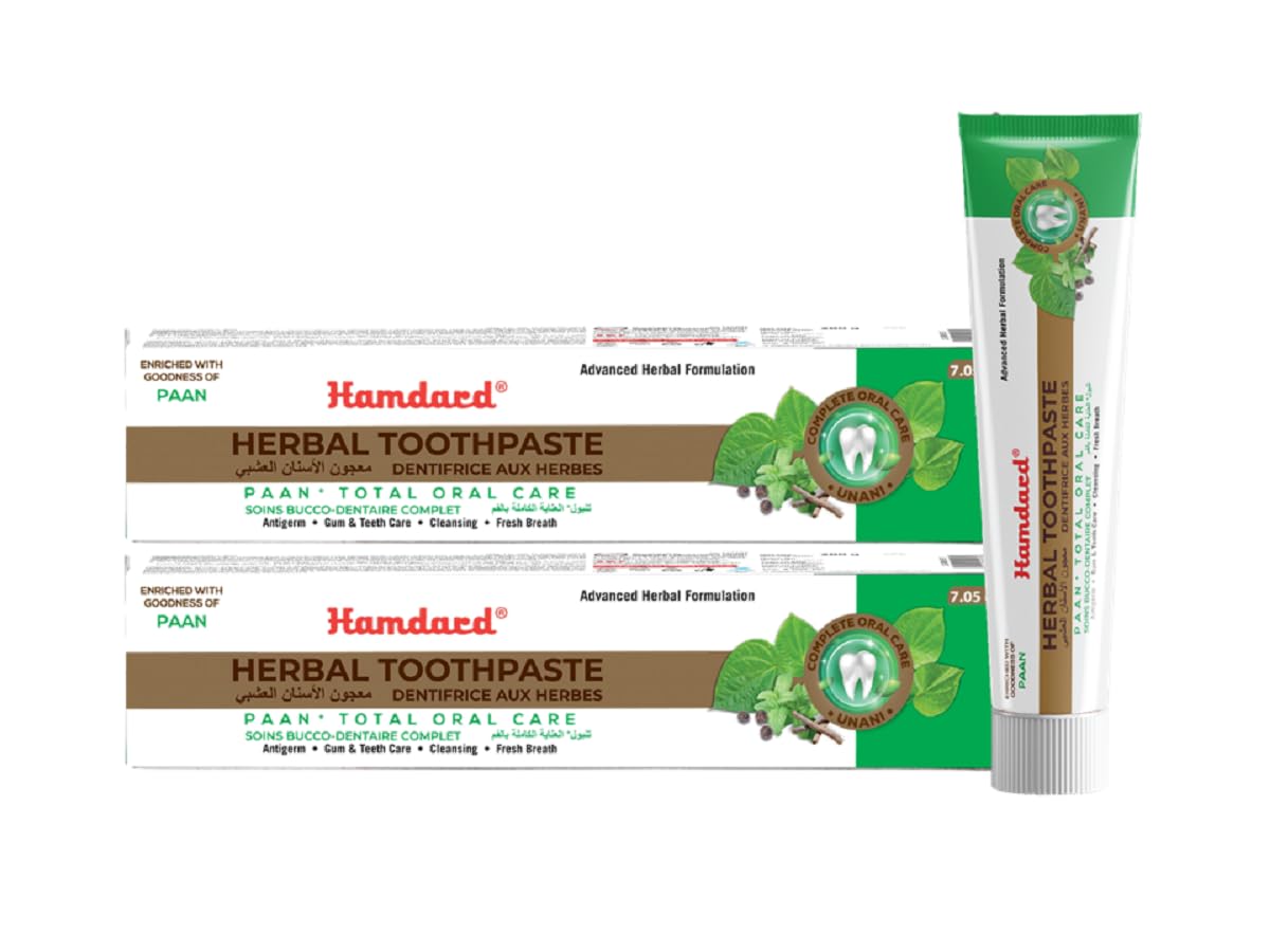 Value Pack of 2 – Includes four 200g tubes, perfect for family use or long-term supply. Trusted by generations, from the house of Hamdard. Fights Bad Breath Strengthens Gums – Natural clove and herbal actives help reduce odor, support gum health and leave your mouth feeling clean and refreshed. Fluoride-Free Natural – Safe for daily use, especially for those looking to avoid fluoride. Ideal for individuals with sensitive gums or chemical sensitivity. Ayurvedic Formula for Total Mouth Care – Helps strengthen gums, fight bad breath and promote overall oral health with time-tested Ayurvedic ingredients. Herbal Oral Care with Paan Flavor – A unique toothpaste infused with traditional paan ingredients like clove, cardamom and herbs for natural oral hygiene and a refreshing taste.