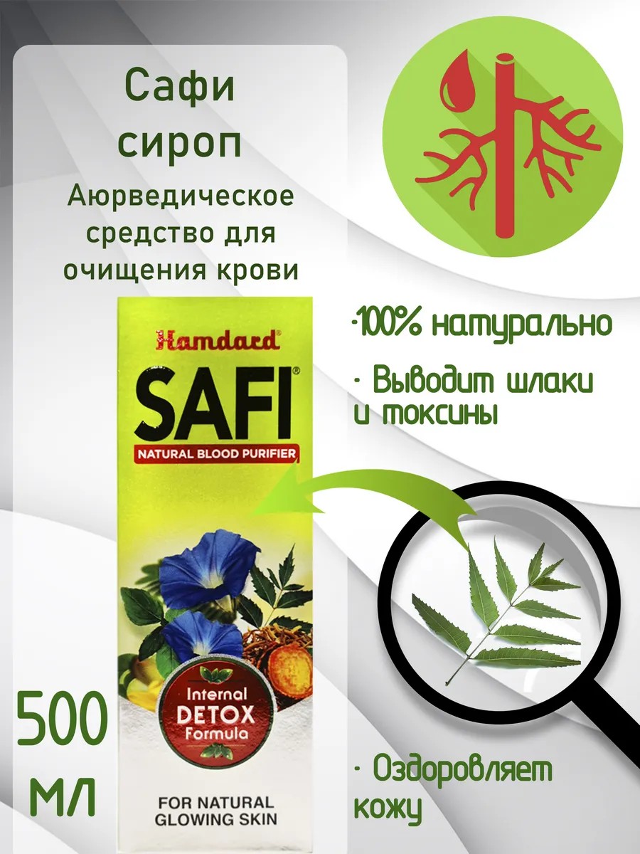 Сафи очищает кровь изнутри, давая вашей печени, щитовидной железе и остальным частям вашего тела необходимую им поддержку и устраняя токсины, которые обычно вызывают прыщи и пятна. Смесь Safi из основных экстрактов трав освобождает кожу от прыщей, делая ее чистой, здоровой и светящейся. В состав входит экстракт, который очищает кровь и освобождает ее от почти любого заболевания кожи, освобождает кожу от токсинов, в то время как Сенна держит желудок чистым. Улучшает кровообращение и в результате ваша кожа становится сияющей и приобретает здоровый вид. Регулярное применение Safi способствует эффективной борьбе с прыщами, исцелению кожи, в следствии чего кожа выглядит естественной и сияющей. Как правило, его прописывают при угрях или прыщах, фурункулах, пятнах, темных кругах и кожных сыпях. Он улучшает пищеварение и помогает очищать пищеварительную систему от токсинов.