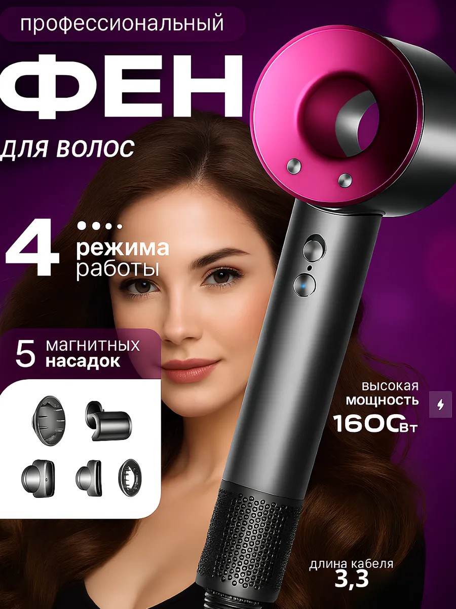 | Тип фена | фен для волос профессиональный мощный с диффузором для кудрей для кудрявых волос; многофункциональный профессиональный фен для волос с насадками на магнитах 5в1; фен для волос мощный дорожный |