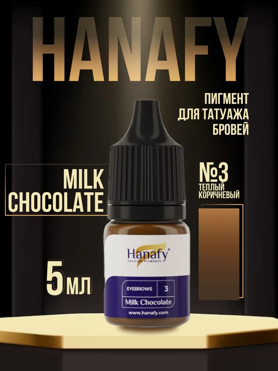 Пигмент Hanafy для бровей № 3. Milk Chocolate, 5 мл – это нежный оттенок молочного шоколада, согревающий образ и подчеркивающий естественную красоту! Этот самый теплый оттенок в бровной палитре Hanafy создан специально для блондинок и шатенок с теплым цветом глаз.