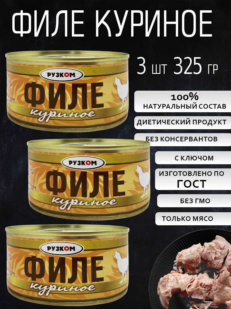 Филе куриное от РУЗКОМ — это отличный выбор для быстрого и вкусного обеда или ужина. Упаковка содержит три банки по 325 грамм что удобно для семейного стола или для тех, кто любит готовить на несколько дней вперед. Куриное филе — это источник белка и ценных аминокислот, а также диетический продукт, который подходит для здорового питания.