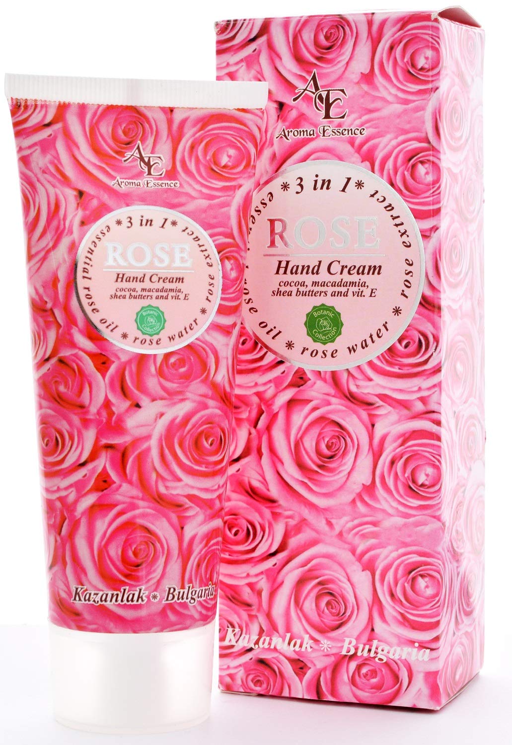 The anti-aging hand cream ""Rose 3 in 1"" by aroma essence is a gentle hand moisture cream that is suitable for all skin types.It hydrated immediately and offers the skin comfort while it protects it from the harmful free radicals to prevent your skin from getting old.Our unique formula combines the wealth of the essential Bulgarian rose oil, rose water and extracts made of pink Damascena, which have a toning and calming effect, with the butts of cocoa, macadamia and shea, which intensively moisten, maintain and improve the skin elasticity of the hands.We also recorded vitamins, for its defending skin properties, and glycerin, which softens and holds the hydro balance of the skin.The non -fat formula of the cream moves quickly.Apply every day after washing your hands to achieve better results.?? guaranteed quality.This hand cream is all you need to keep your skin's moisture content in perfect balance.Parabens and cruelty free.Suitable for all skin types, particularly dry and sensitive.??anti-aging effect.Rose oil, rose water and cocoa are rich in antioxidants, which makes them natural anti-aging active ingredients that they can use in their daily beauty regime.The antioxidants help to repair the damage to their skin cells caused by the harmful free radicals.?? Special hand care.The cocoa, macadamia and shea butter are rich in fatty acids, vitamins and antioxidants, so that their skin, like never before, remains silky and smooth.??Taler protection and moisturizing.The rose water and rose oil have the power to deepen its damaged skin deeply with its anti -inflammatory properties.The cream is rich in antioxidants and strengthens and regenerates its skin cells.??The best selection of ingredients for ultimate moisture results.Damascena rose oil, rose water, cocoa, macadamia, shea butter and vitamin E. light, not fatty and quick.Apply to clean and dry skin. Die Anti-Aging-Handcreme ""Rose 3 in 1"" von Aroma Essence ist eine sanfte Handfeuchtigkeitscreme, die für alle Hauttypen geeignet ist. Es hydratisiert sofort und bietet der Haut Komfort, während es sie vor den schädlichen freien Radikalen schützt, um zu verhindern, dass Ihre Haut altert. Unsere einzigartige Formel kombiniert den Reichtum des ätherischen bulgarischen Rosenöls, Rosenwassers und Extrakts aus Rosa Damascena, die eine tonisierende und beruhigende Wirkung haben, mit den Buttern von Kakao, Macadamia und Shea, die die Hautelastizität der Hände intensiv befeuchten, pflegen und verbessern. Wir haben auch Vitamin E, bekannt für seine verteidigenden Hauteigenschaften, und Glycerin, das das Hydro-Gleichgewicht der Haut erweicht und hält, aufgenommen. Die nicht fettende Formel der Creme zieht schnell ein. Täglich nach dem Händewaschen auftragen, um bessere Ergebnisse zu erzielen.??Garantierte Qualität. Diese Handcreme ist alles, was Sie brauchen, um den Feuchtigkeitsgehalt Ihrer Haut in perfekter Balance zu halten. Parabene und Grausamkeit frei. Geeignet für alle Hauttypen, besonders trocken und empfindlich. ??Anti-Aging Wirkung. Rosenöl, Rosenwasser und Kakao sind reich an Antioxidantien, was sie zu natürlichen Anti-Aging-Wirkstoffen macht, die Sie in Ihrem täglichen Schönheitsregime verwenden können. Die Antioxidantien helfen dabei, die durch die schädlichen freien Radikale verursachten Schäden an Ihren Hautzellen zu reparieren. ??Spezielle Handpflege. Die Kakao, Macadamia und Sheabutter sind reich an Fettsäuren, Vitaminen und Antioxidantien, sodass Ihre Haut wie nie zuvor perfekt genährt, seidig und glatt bleibt. ??Totaler Schutz und Feuchtigkeitsspendend. Das Rosenwasser und das Rosenöl haben die Kraft, Ihre geschädigte Haut mit ihren entzündungshemmenden Eigenschaften tief zu beruhigen. Die Creme ist reich an Antioxidantien und stärkt und regeneriert Ihre Hautzellen. ??Die beste Auswahl an Inhaltsstoffen für ultimative Feuchtigkeitsergebnisse. Damascena Rosenöl, Rosenwasser, Kakao, Macadamia, Sheabutter und Vitamin E. Leicht, nicht fettend und schnell einziehend. Auf saubere und trockene Haut auftragen.Handcreme 3 in 1 mit natürlichem Rosenöl, Rosenwasser und Rosenextrakt, Anti-Aging- und Feuchtigkeitsformel für weiche und geschützte Händehaut 75 ml