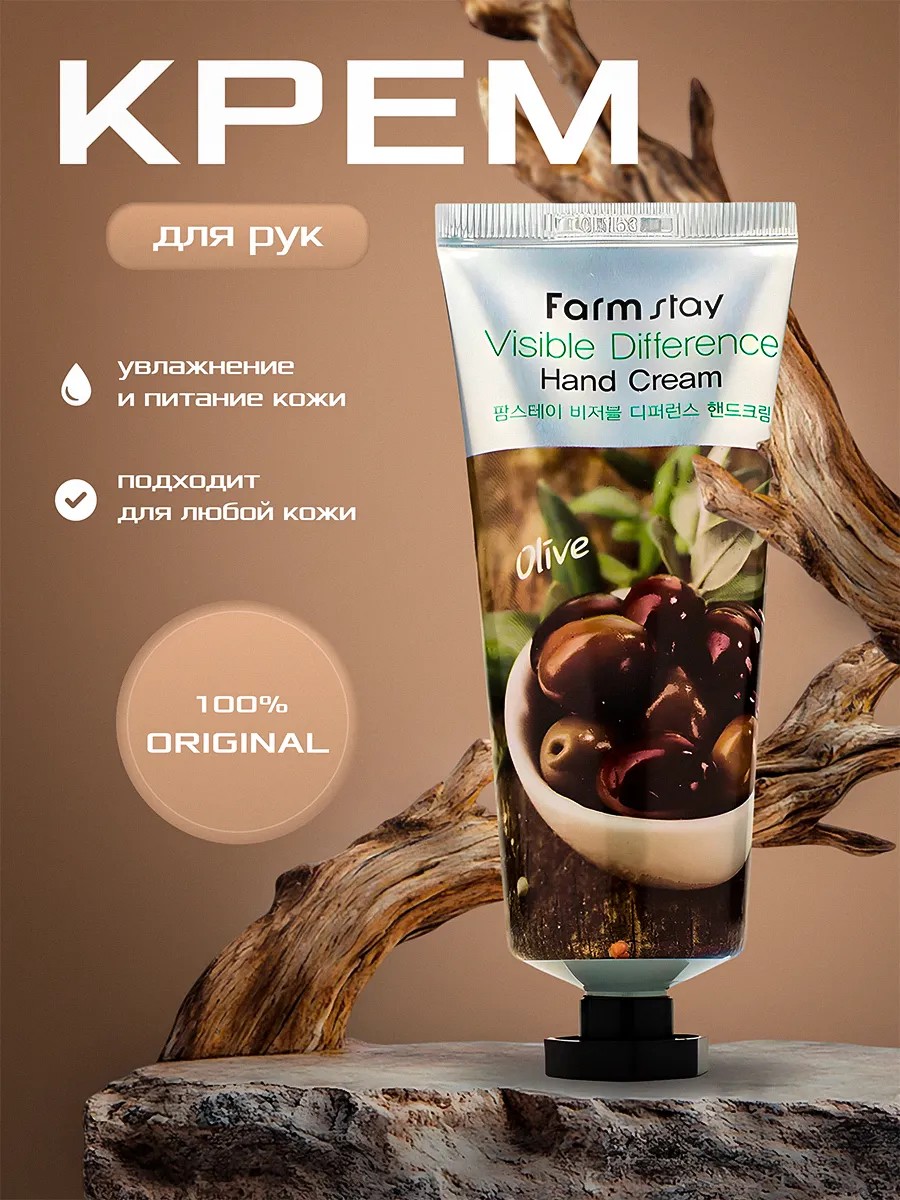 Give your hands an indescribable feeling of comfort and care with Farm Stay Visible Difference Moisturizing Hand Cream. This unique olive oil-based formula works like a true elixir for your skin, providing intense hydration and nourishment. Olive oil actively helps restore the moisture balance of your hands, eliminating dryness and flaking, leaving them incredibly soft and smooth. Its light texture absorbs instantly without leaving an unpleasant stickiness, providing long-lasting hydration. The pleasant scent creates a feeling of freshness and comfort, allowing you to enjoy every minute. This Korean cream actively softens and protects your hands from external influences such as cold, wind, and dry air, making it ideal for use at any time of year. This hand cream is especially effective for those with dry and sensitive skin, as it quickly relieves discomfort caused by dryness and restores a healthy appearance. Regular use of this hand cream helps maintain hydration and protection without overloading the skin or leaving a greasy residue. If you want to give your wife, grandmother, friend, sister, or colleague irreplaceable care and attention, choose the Pharm Stay hand moisturizer with natural ingredients. This product will help preserve the youth and beauty of your hands, leaving them smooth and silky for a long time.
