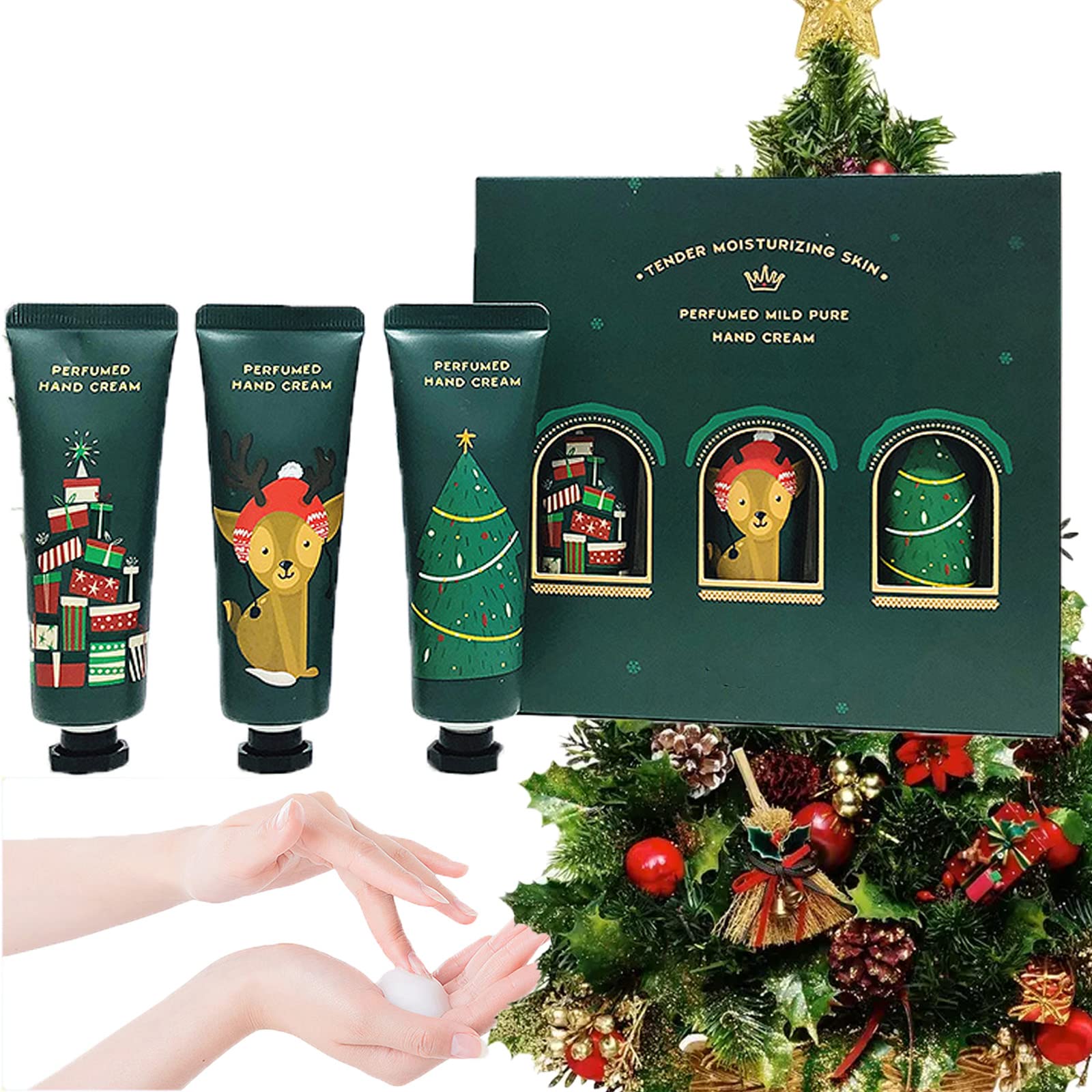 Hand Cream Moisturizing Hand Creams Mini Christmas Hand Cream Nourishing Hand Care Cream Repair Cream Cream for Dry and Chapped Hands (C2)Directions for Use For best results, apply after washing hands and bathing, moisturizing evenly on palms, surfaces and nails, as these are the most effective times to moisturize dry skin. You can use hand cream while traveling, in the office and at home. Take care of your hands anytime, anywhere. Unique Gift for All Occasions The gift box packaging design is an ideal gift option for Christmas, Valentine's Day, Mother's Day, birthdays and anniversaries. Easy Absorption Non-Greasy Immediately after application, the lightweight, non-greasy formula absorbs instantly and leaves the skin comfortable. This hand cream draws moisture into the skin and protects it from further moisture loss. Regular use in autumn and winter leaves your hands feeling silky, smooth and rejuvenated. Suitable for All Skin Types Especially suitable for existing dry yellow skin, dehydrated skin. It can smooth dry and cracked skin and improve skin elasticity. Absorbs quickly, intensive care for dry and cracked hands. Natural Ingredients Pure natural plant essence, hand creams are enriched with shea butter, natural aloe and vitamin E. This rich, deeply moisturizing and hydrating hand cream leaves hands feeling silky, smooth and rejuvenated. Perfect size for a handbag and easy to carry. Crème pour les mains Crèmes pour les mains hydratantes Mini crème pour les mains de Noël Crème de soin nourrissante pour les mains Crème réparatrice Crème pour les mains sèches et gercées (C2)Conseils d'utilisation Pour de meilleurs résultats, appliquez après le lavage des mains et le bain, en hydratant uniformément les paumes, les surfaces et les ongles, car ce sont les moments les plus efficaces pour hydrater la peau sèche. Vous pouvez utiliser de la crème pour les mains en voyage, au bureau et à la maison. Prenez soin de vos mains à tout moment, n'importe où. Cadeau unique pour toutes les occasions La conception de l'emballage de la boîte-cadeau est une option de cadeau idéale pour Noël, la Saint-Valentin, la fête des mères, les anniversaires et les anniversaires. Absorption facile et non grasse Immédiatement après l'application, la formule légère et non grasse absorbe instantanément et laisse la peau confortable. Cette crème pour les mains attire l'humidité dans la peau et la protège contre une perte d'humidité supplémentaire. Une utilisation régulière en automne et en hiver laisse vos mains soyeuses, lisses et rajeunies. Convient à tous les types de peau Particulièrement adapté aux peaux jaunes existantes sèches, aux peaux déshydratées. Il peut lisser la peau sèche et craquelée et améliorer l'élasticité de la peau. pénètre rapidement, soin intensif pour les mains sèches et craquelées. Ingrédients naturels Essence végétale naturelle pure, les crèmes pour les mains sont enrichies en beurre de karité, en aloès naturel et en vitamine E. Cette crème pour les mains riche, profondément hydratante et hydratante laisse les mains soyeuses, lisses et rajeunies. Taille parfaite pour un sac à main et facile à transporter.