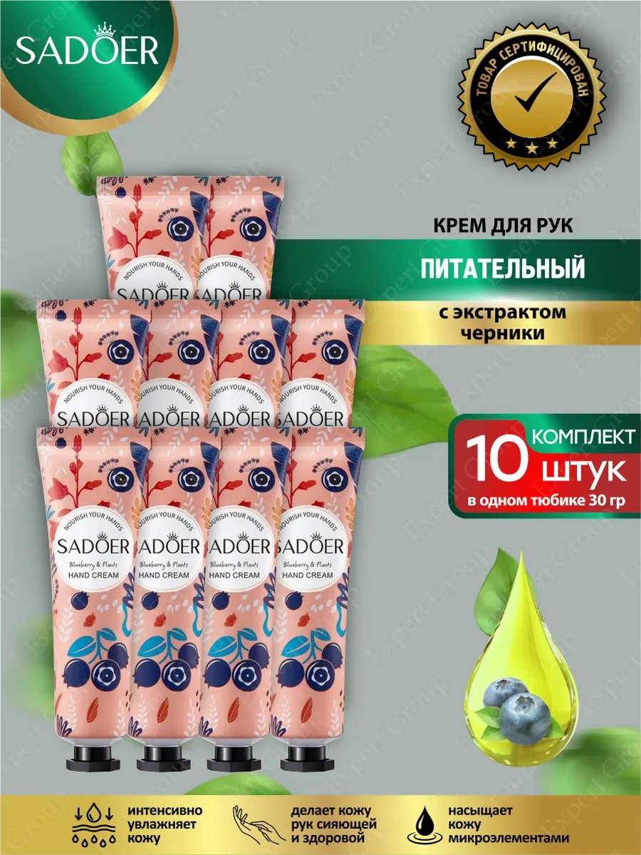 | Комплектация | Питательный крем для рук Sadoer с травами и экстрактом черники 30 гр х 10 шт. |