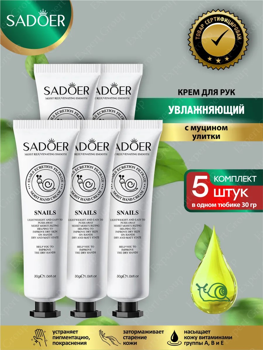 | Комплектация | Увлажняющий крем для рук Sadoer с муцином улитки 30 гр х 5 шт. |