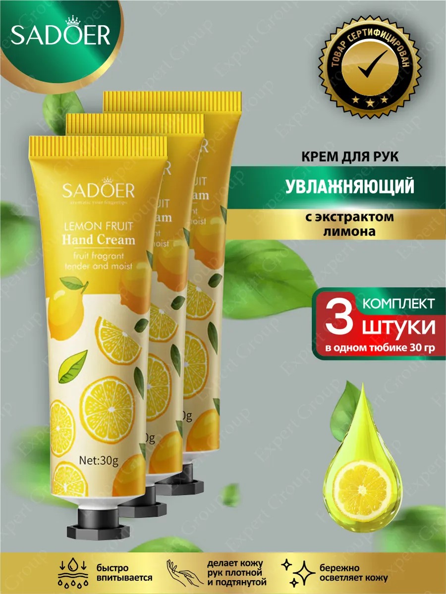| Комплектация | Увлажняющий крем для рук Sadoer с экстрактом лимона 30 гр х 3 шт. |