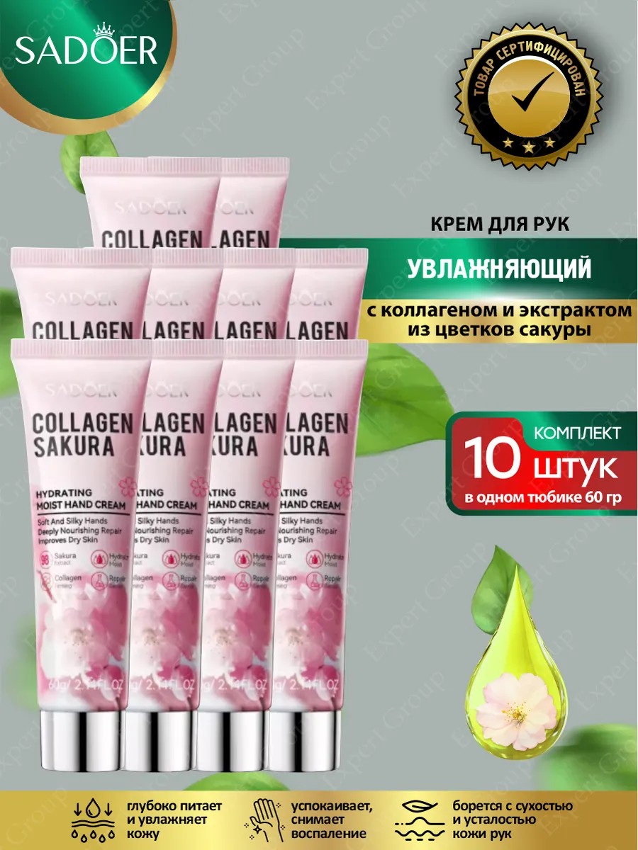 | Комплектация | Увлажняющий крем для рук Sadoer с коллагеном и экстрактом из цветков сакуры 60 гр х 10 шт. |