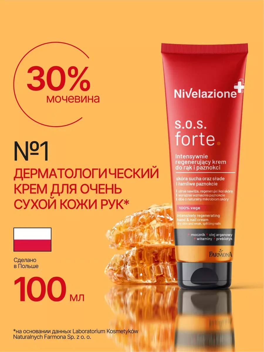 Hand cream with urea "S.O.S forte" from Farmona Nivelazione is a unique protective hand cream for dry and very dry skin, which acts as a true "regenerating bandage," soothing irritations and accelerating the recovery of damaged skin.