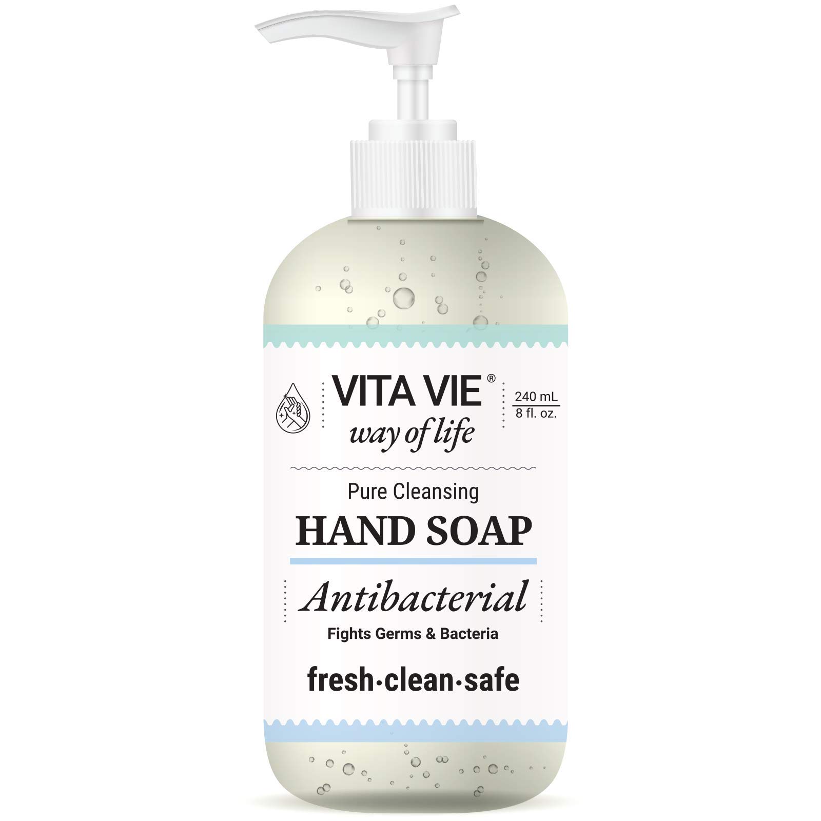 Active Ingredient: Benzalkonium Chloride 0.13 (Antiseptic) PARABEN-FREE, SULFATE-FREE, CRUELTY-FREE. PROUDLY MADE IN AMERICA. WOMEN OWNED. GMP. EASY TO USE: Keeping a bottle handy in your home and office is a great preventative measure and makes frequent hand washing an easy, no fuss task. KID-FRIENDLY: The ingredients used in our hand soap are gentle enough for children's sensitive skin, while still removing dirt and germs. Great to use at home or in your classroom where cold germs lurk. GENTLE FOR ALL SKIN-TYPES: Natural ingredients deeply nourish skin. Free from the harshest synthetic chemicals used on other brands that irritate sensitive skin. Our nutrient rich hand soap includes with hazel and willow bark extract as well as tea tree oil to leave your skin clean and soft. EFFECTIVE HAND SOAP: The Vita Vie cleansing hand soap is a nourishing formula that works to remove germs and harmful bacteria from hands, without overly drying the skin.