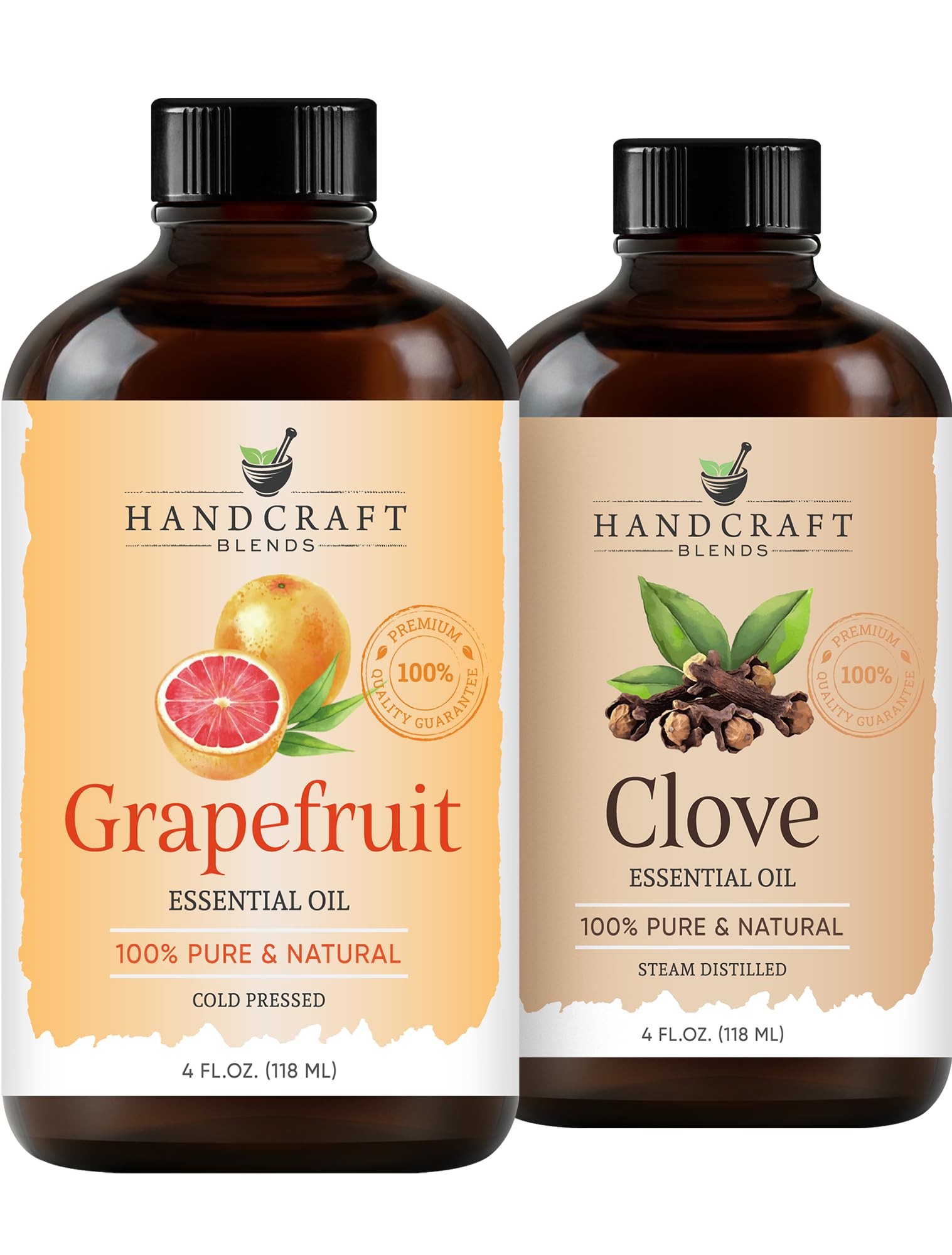 Handcraft Blends Bright & Bold Set: Clove and Grapefruit Essential Oils (2 x 4 Fl Oz) 100% Pure & Natural for Diffuser Aromatherapy and DIY Projects