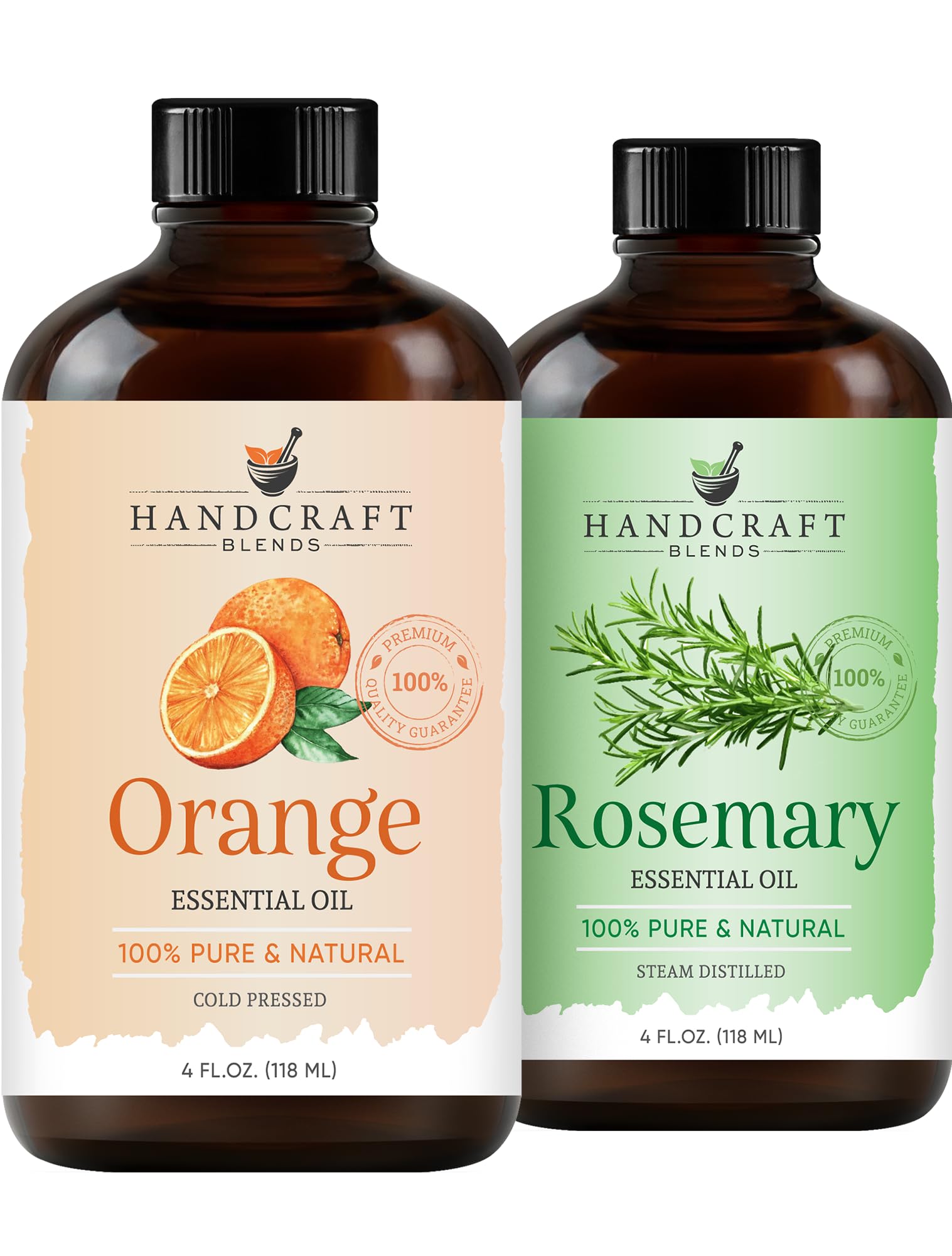 BOTTLED IN THE USA QUALITY GUARANTEED: We source our oils from the finest regions around the world and bottle them with care in the United States. Your satisfaction is guaranteed. VERSATILE FOR COUNTLESS DIY PROJECTS: Great for morning diffuser blends, invigorating room sprays, sweet-scented soaps, and cheerful candle making. COMPLETE AROMATHERAPY STARTER SET: You receive two high-quality amber glass bottles to protect the oils from UV rays, plus two separate glass droppers for precise, waste-free application. 100 PURE ROSEMARY ORANGE OIL: Includes two 4 fl oz bottles of our finest oils, free from any fillers or additives. Each oil is independently tested for purity, ensuring a truly premium grade product. A CHEERFUL UPLIFTING HERBAL AROMA: A delightful aromatic duo. The crisp, stimulating scent of Rosemary blends beautifully with the sweet, sunny aroma of Orange to create an uplifting, fresh, and herbaceous atmosphere.
