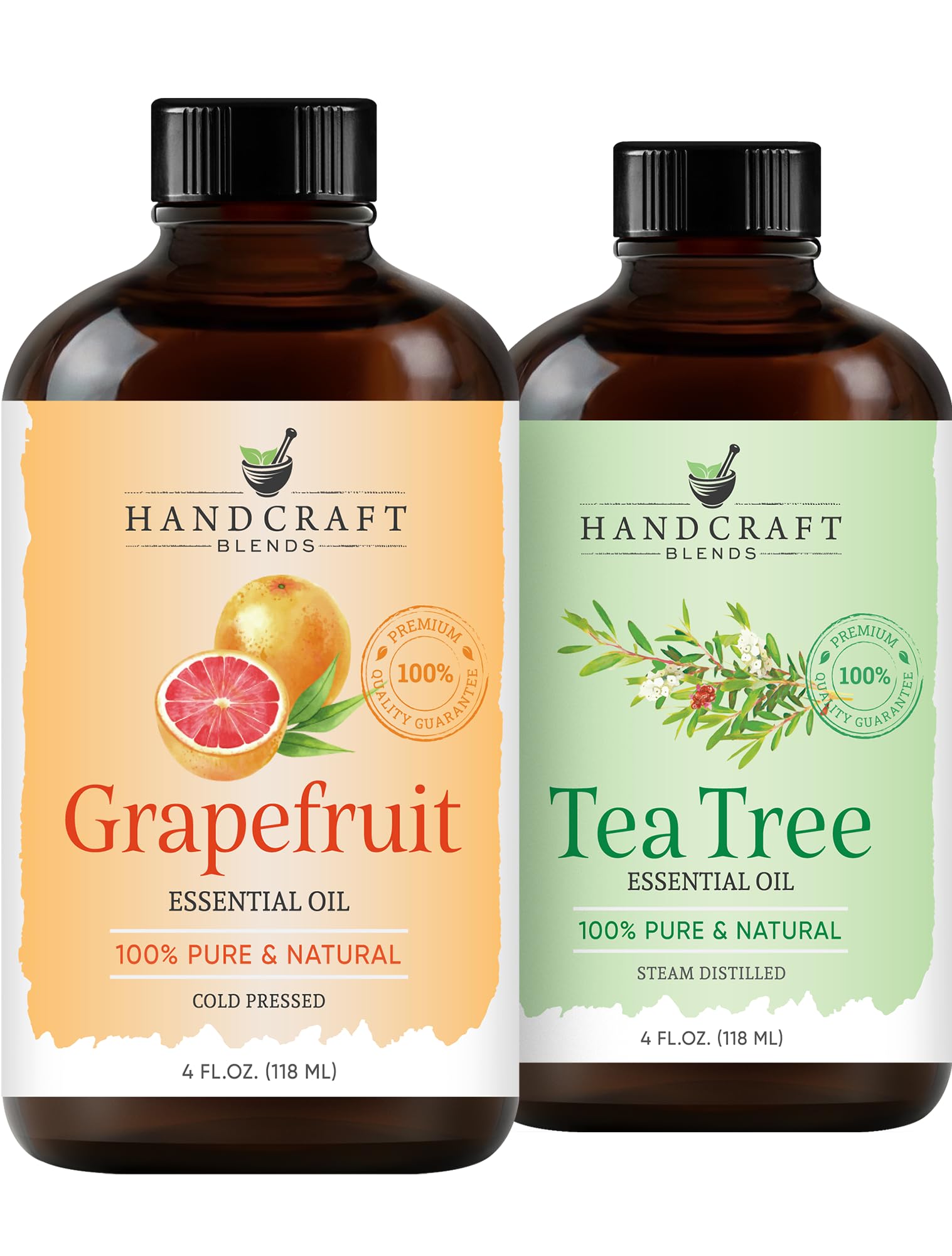Handcraft Blends Citrus Cleanse Set: Tea Tree and Grapefruit Essential Oils (2 x 4 Fl Oz) 100% Pure & Natural for Diffuser Aromatherapy and DIY Projects