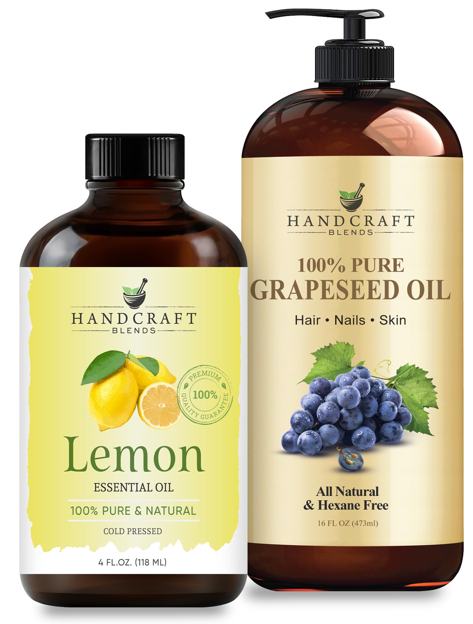 Handcraft Blends Detox & Glow Set: Grapeseed Oil (16 Fl Oz) and Lemon Essential Oil (4 Fl Oz) 100% Pure & Natural Lightweight Body Oil for Toning