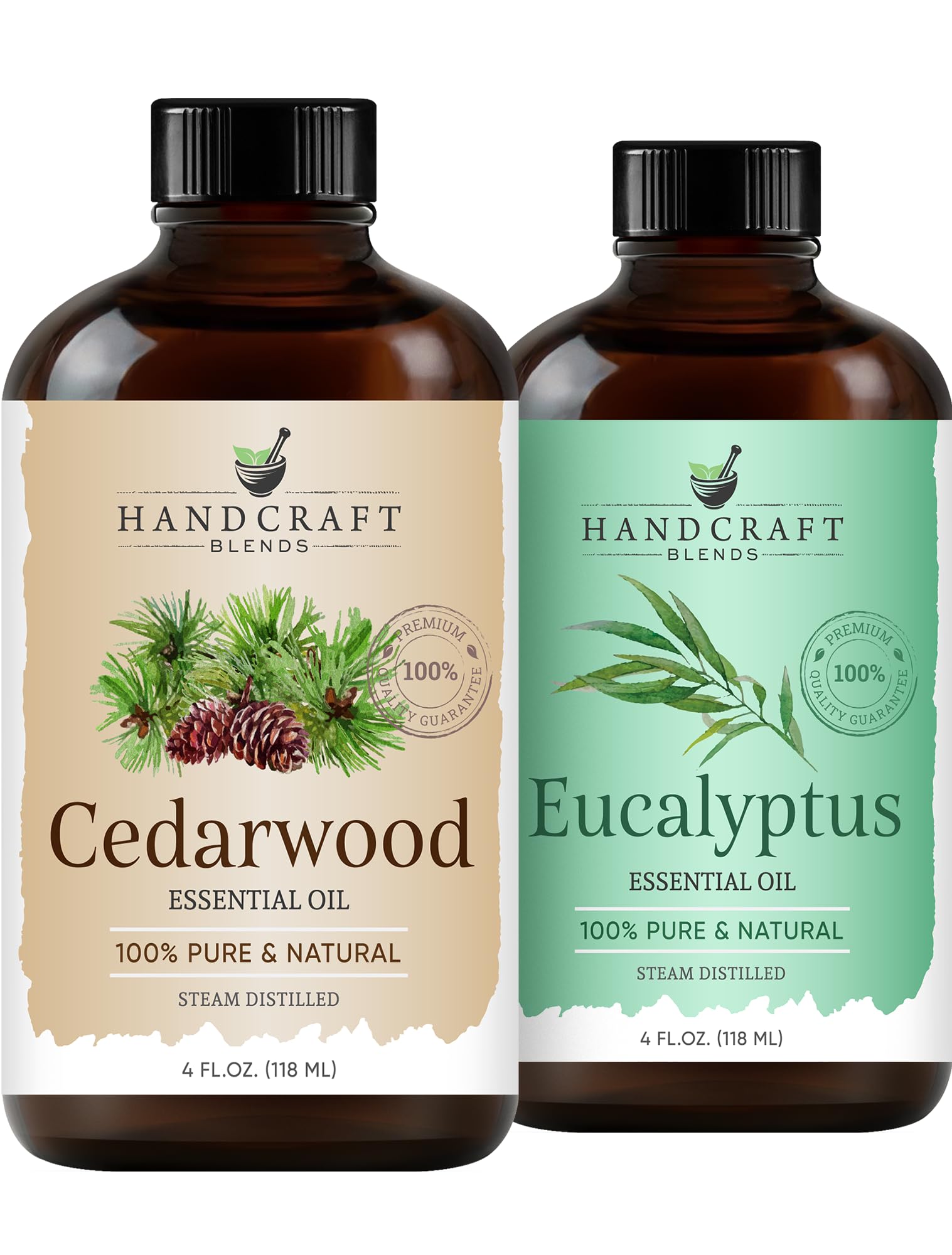 BOTTLED IN THE USA QUALITY GUARANTEED: We source our oils from the finest regions around the world and bottle them with care in the United States. Your satisfaction is guaranteed. VERSATILE FOR COUNTLESS DIY PROJECTS: Excellent for creating nature-inspired diffuser blends, masculine-scented soaps and candles, and enriching lotions. COMPLETE AROMATHERAPY STARTER SET: You receive two high-quality amber glass bottles to protect the oils from UV rays, plus two separate glass droppers for precise, waste-free application. 100 PURE EUCALYPTUS CEDARWOOD OIL: Includes two 4 fl oz bottles of our finest oils, free from any fillers or additives. Each oil is independently tested for purity, ensuring a truly premium grade product. A FRESH GROUNDING FOREST AROMA: Experience the great outdoors. The crisp, clean scent of Eucalyptus blends with the warm, woody aroma of Cedarwood to create a calming and grounding forest-like atmosphere.