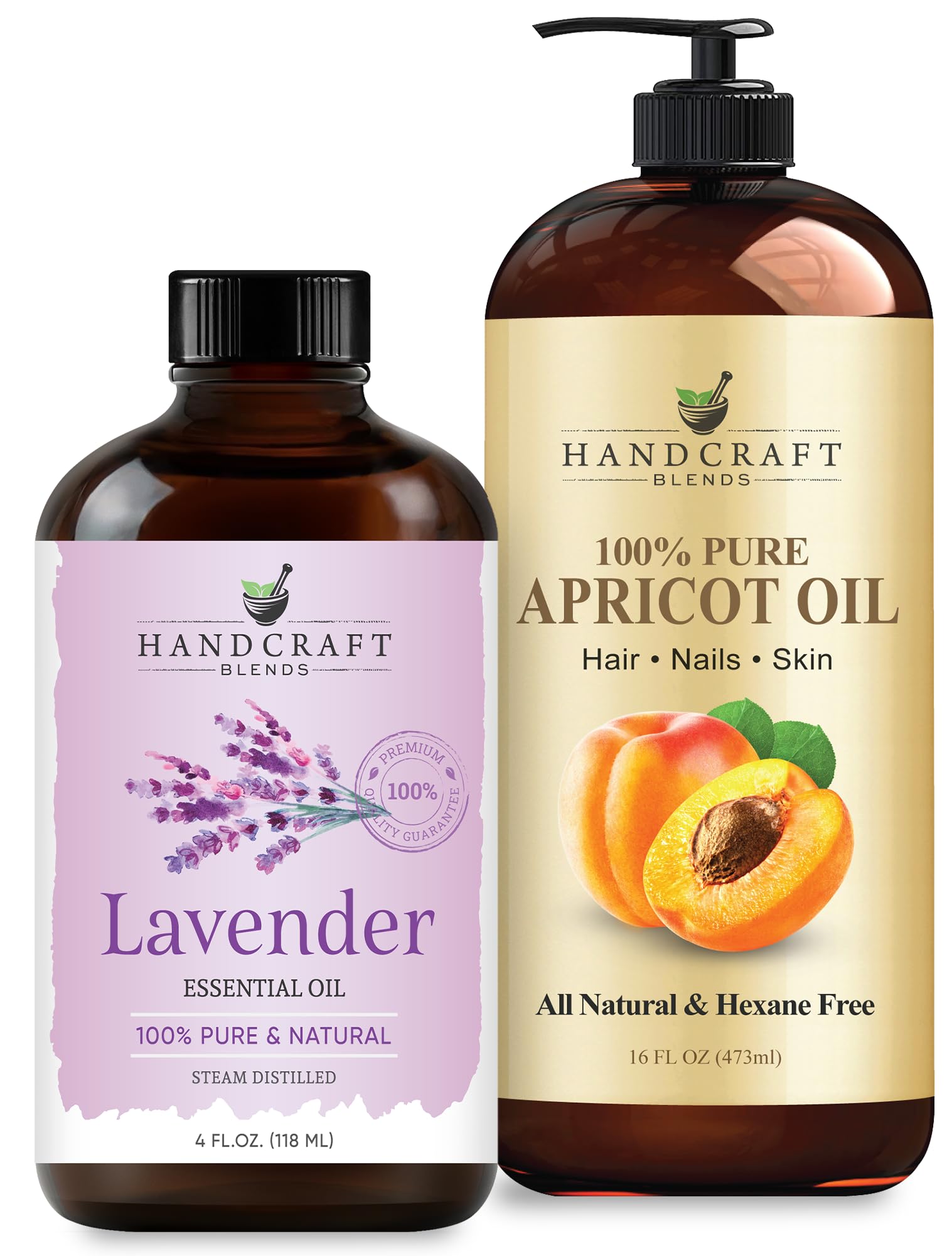 Handcraft Blends Gentle Relax Set: Apricot Kernel Oil (16 Fl Oz) and Lavender Essential Oil (4 Fl Oz) 100% Pure & Natural for Soothing Massage and Baby Soft Skin