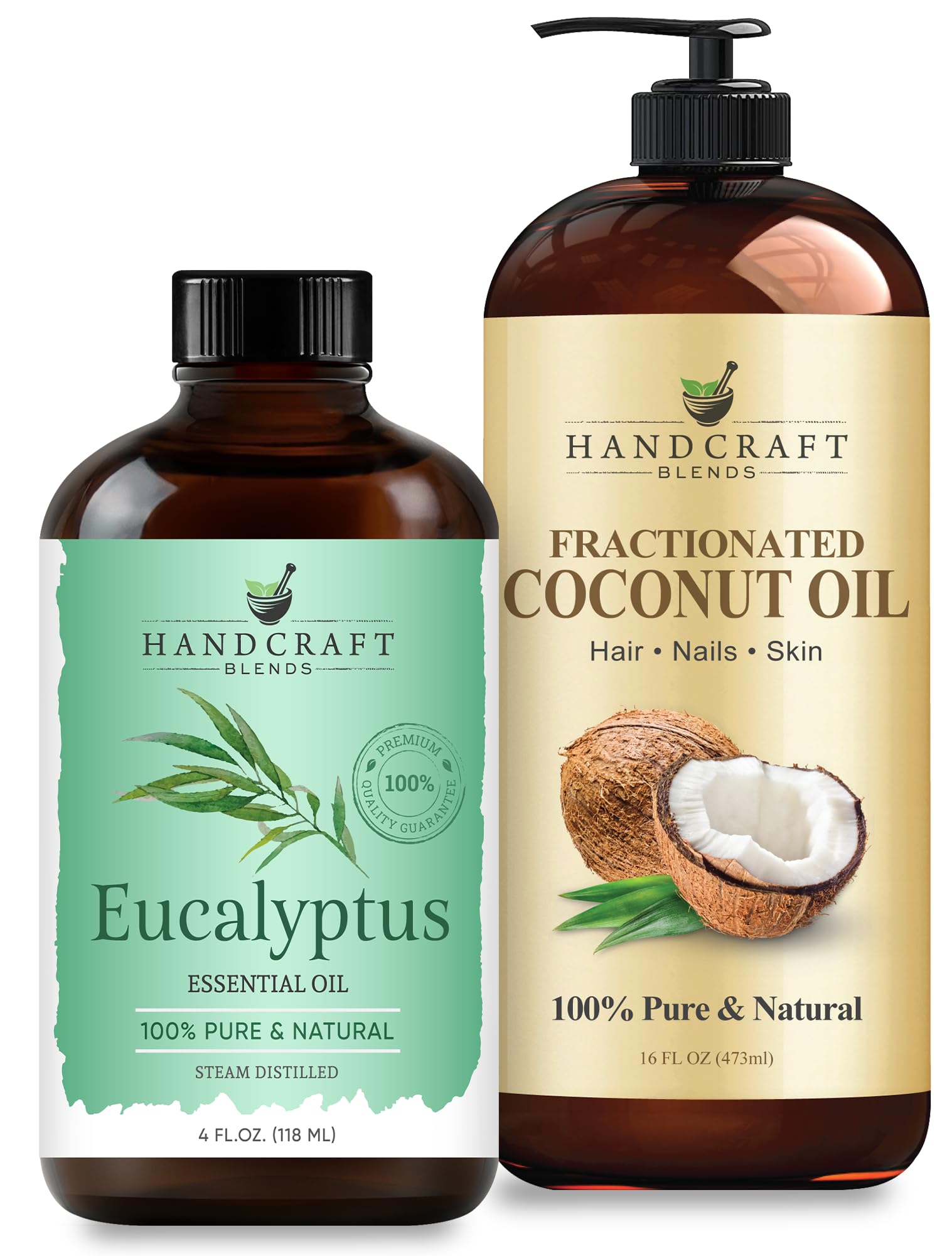 Handcraft Blends Muscle Relief Set: Fractionated Coconut Oil (16 Fl Oz) and Eucalyptus Essential Oil (4 Fl Oz) 100% Pure & Natural for Massage and Vapor Rubs