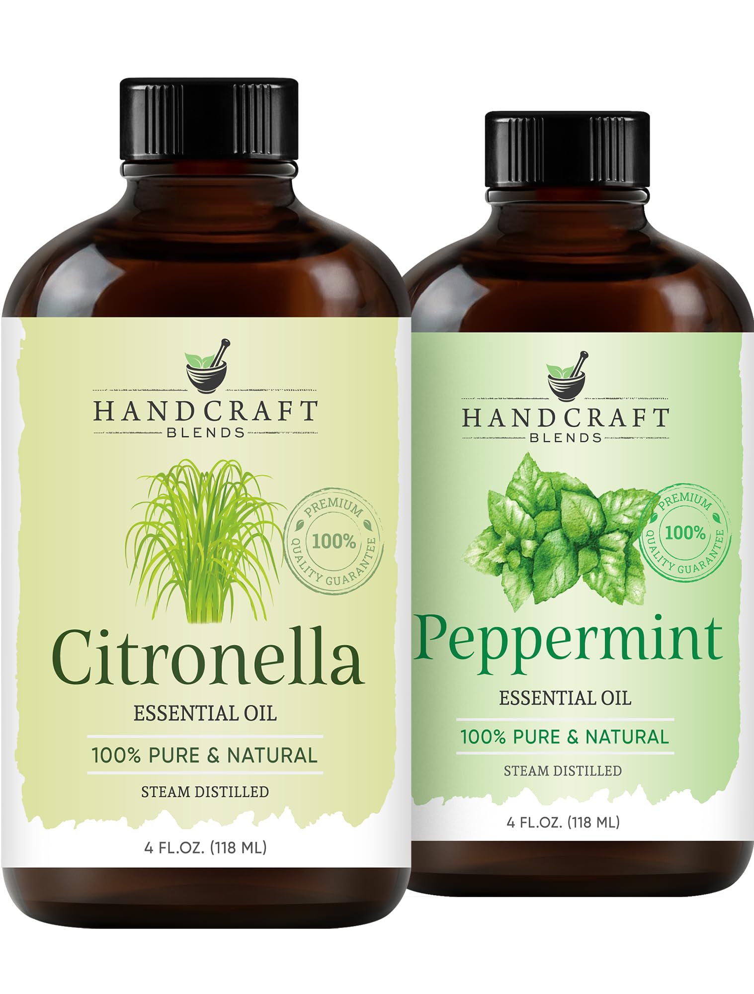 BOTTLED IN THE USA QUALITY GUARANTEED: We source our oils from the finest regions around the world and bottle them with care in the United States. Your satisfaction is guaranteed. VERSATILE FOR COUNTLESS DIY PROJECTS: Ideal for creating outdoor candles, patio diffuser blends, and homemade sprays for outdoor furniture and spaces. COMPLETE AROMATHERAPY STARTER SET: You receive two high-quality amber glass bottles to protect the oils from UV rays, plus two separate glass droppers for precise, waste-free application. 100 PURE PEPPERMINT CITRONELLA OIL: Includes two 4 fl oz bottles of our finest oils, free from any fillers or additives. Each oil is independently tested for purity, ensuring a truly premium grade product. YOUR PERFECT OUTDOOR COMPANION: Enjoy your time outdoors with this fresh aromatic duo. The sharp scent of Peppermint mixed with the grassy-citrus aroma of Citronella creates the perfect atmosphere for patios and picnics.