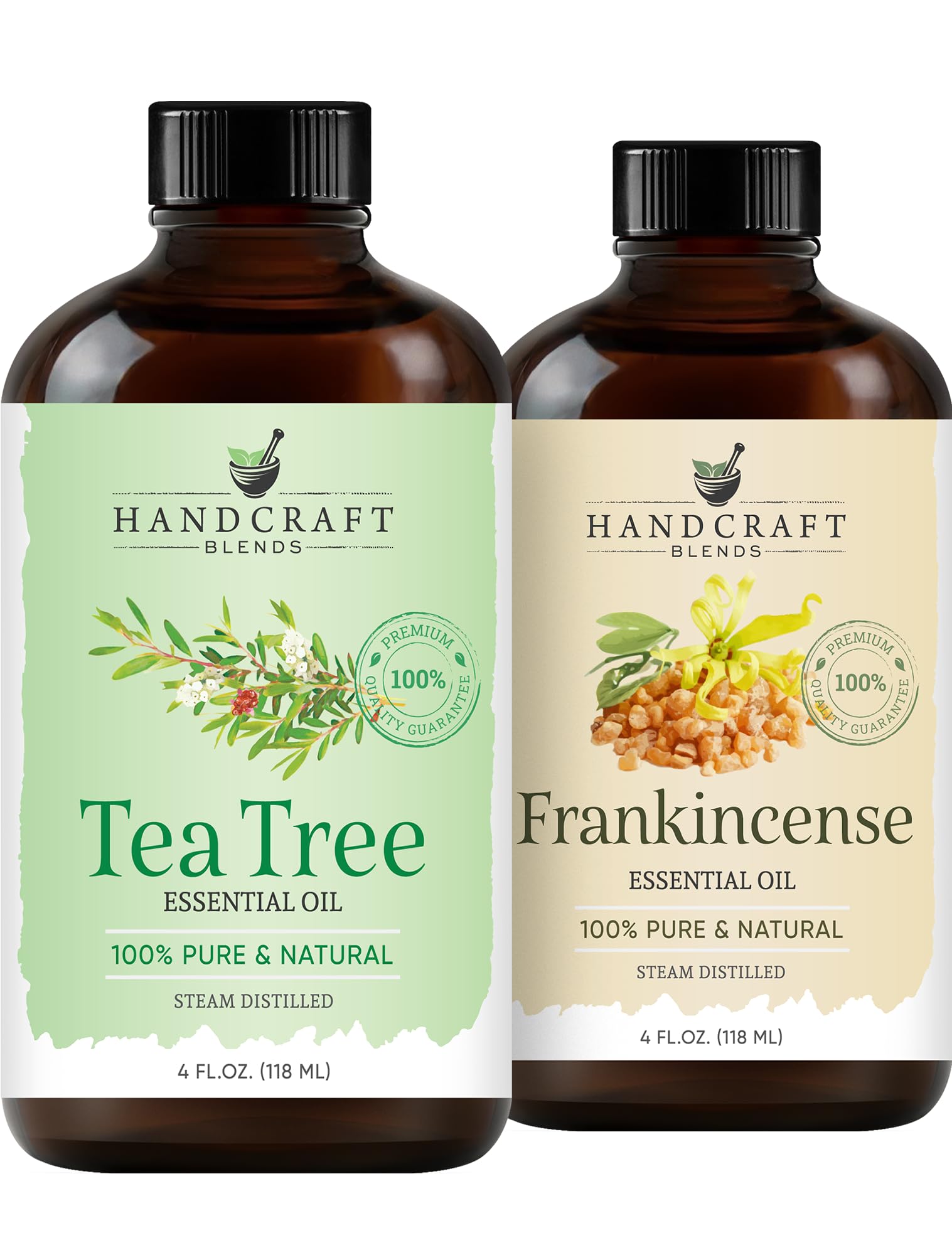 BOTTLED IN THE USA QUALITY GUARANTEED: We source our oils from the finest regions around the world and bottle them with care in the United States. Your satisfaction is guaranteed. VERSATILE FOR COUNTLESS DIY PROJECTS: Excellent for purifying diffuser blends, adding to homemade facial cleansers, and crafting clean-scented soaps and skin balms. COMPLETE AROMATHERAPY STARTER SET: You receive two high-quality amber glass bottles to protect the oils from UV rays, plus two separate glass droppers for precise, waste-free application. 100 PURE FRANKINCENSE TEA TREE OIL: Includes two 4 fl oz bottles of our finest oils, free from any fillers or additives. Each oil is independently tested for purity, ensuring a truly premium grade product. FOR AN ATMOSPHERE OF TOTAL PURITY: A unique blend for a feeling of ultimate clean. The sacred, grounding aroma of Frankincense pairs with the potent, clean scent of Tea Tree to create a balanced and purified environment.