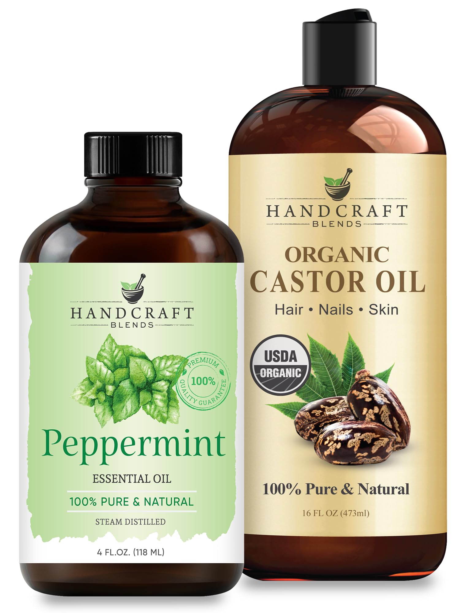 BOTTLED IN THE USA QUALITY GUARANTEED: We source our oils from the finest regions around the world and bottle them with care in the United States. Your satisfaction is guaranteed. VERSATILE BEAUTY USES: Beyond the scalp, use this blend for soothing foot massages, cooling chest rubs, or as a rich body moisturizer for very dry skin. 100 PURE PEPPERMINT ESSENTIAL OIL (4oz): Famous for its menthol content. It delivers a strong cooling sensation that wakes up the skin and promotes a feeling of freshness and circulation. 100 PURE ORGANIC CASTOR OIL (16oz): Known for its high ricinoleic acid content. It deeply conditions dry scalps and helps protect hair from breakage by sealing in moisture. INVIGORATING SCALP CARE: Stimulate and nourish. Mix the rich Organic Castor Oil with a few drops of Peppermint Oil to create a cooling scalp treatment that refreshes the roots and supports a healthy scalp environment.