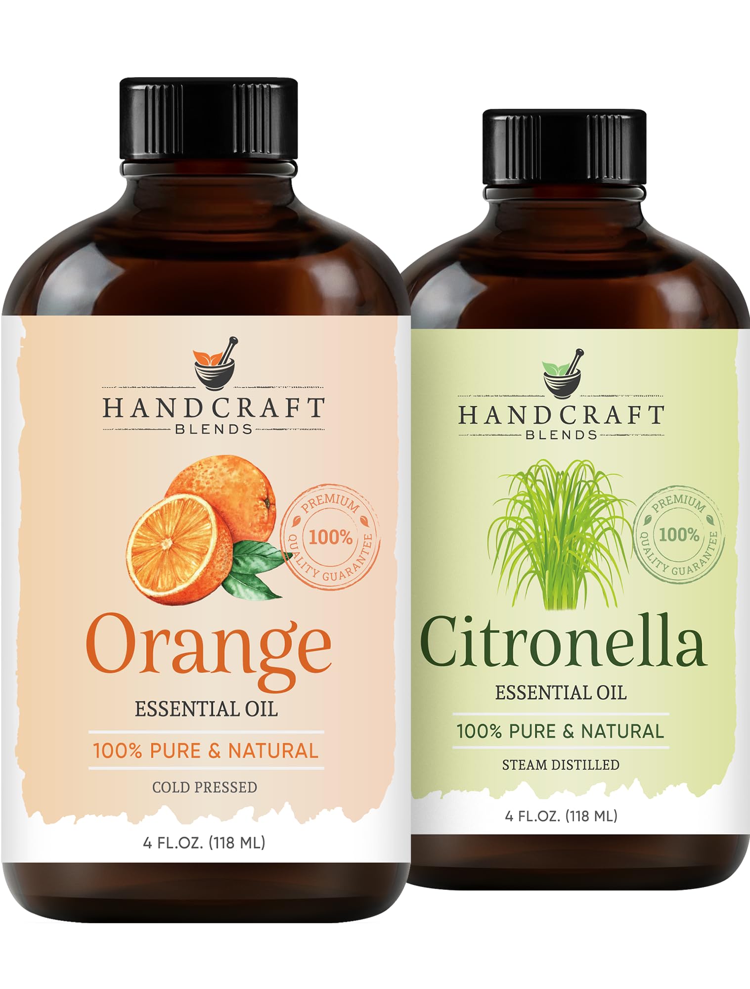 Handcraft Blends Sunset Garden Set: Citronella and Orange Essential Oils (2 x 4 Fl Oz) 100% Pure & Natural for Diffuser Aromatherapy and DIY Projects