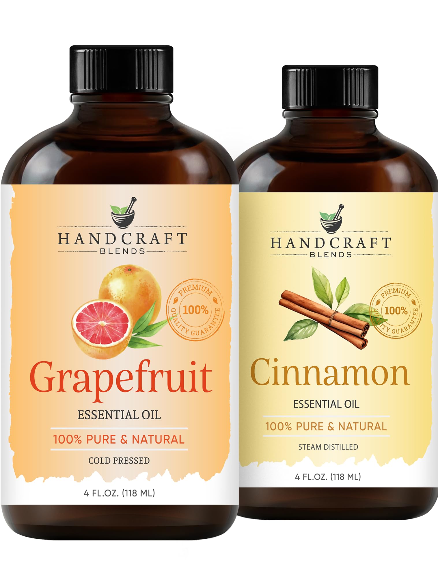 Handcraft Blends Warm & Zesty Set: Cinnamon and Grapefruit Essential Oils (2 x 4 Fl Oz) 100% Pure & Natural for Diffuser Aromatherapy and DIY Projects