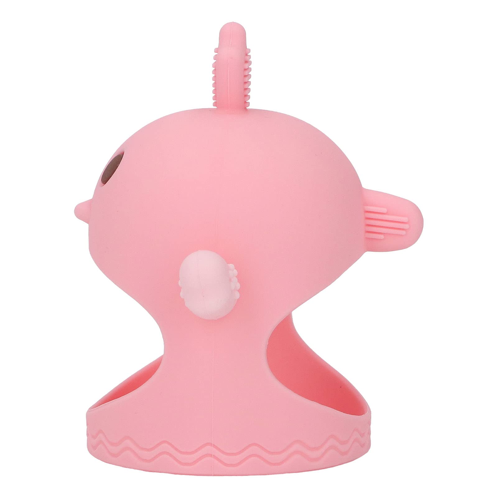 Handheld Pacifier Easy to Use Silicone Portable Teether Soother Cute Chick Shape with 2 Nighttime Teether Rods (Cherry Pink)