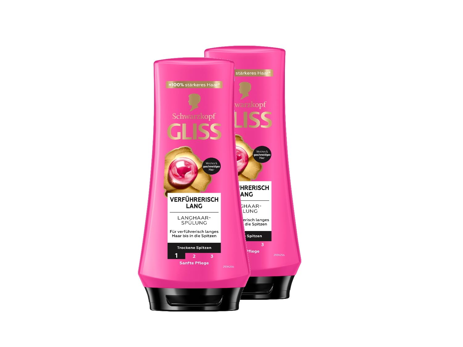 Gliss seductively long conditioner: specially tailored to the needs of long hair. Damaged hair always had to be cut off? Not necessarily. To strengthen long hair, it needs a special care concept. The Gliss conditioner gently removes excess oil at the roots and nourishes dry ends, for 100 stronger hair¹. Thanks to the biotin complex and peony essence, future hair damage is prevented. The conditioner gives seductively flowing hair from root to tip. A combination of high-quality hair active ingredients and natural essences is the basis of all Gliss formulas. They are tailored to the special needs of hair and provide repair and visibly improved hair quality. The bottle is made from 80 recycled material² and the conditioner from 95 ingredients of natural origin³. The hair care is PETA certified. Product benefits in detail: Caring rinse for long hair Nourishes dry ends Prevents future hair damage For 100 stronger hair¹ With biotin complex peony essence Directions: After washing, gently distribute through damp hair. Rinse well. Use regularly for hair care. For optimal results, first use the seductive long shampoo.¹ Compared to untreated hair² Excluding cap and labels³ Includes water HOW TO USE After washing, gently distribute through damp hair. Rinse well. Use regularly for hair care and for optimal results, first use the seductive long shampoo.Easy to use: gently distribute into damp hair after washing. Rinse well. Use regularly for hair care and for optimal results use the seductive long shampoo first. Good for the planet: the bottle of the tempting long rinse is made from 80 recycled material². 95 of the ingredients are of natural origin³. Temptingly long: repair instead of cutting. The nourishing rinse gently removes excess oil from the base and cares for dry ends: for 100 stronger hair¹. With biotin complex and peony essence - the rinse prevents future hair damage thanks to the biotin complex and peony essence, for long-lasting beautiful hair. Supple long hair - long hair with greasy roots and dry ends? The Gliss rinse ensures perfect combability and seductively long hair from the root to the tips.Gliss Conditioner verleidelijk lang (2 x 200 ml), haarconditioner herstelt beschadigde haarlengtes, conditioner verzorgt droge punten 200 ml (2er Pack) Gliss verleidelijk lange spoeling: speciaal afgestemd op de behoeften van lang haar, beschadigd haar moest tot nu toe steeds weer worden afgesneden? Niet noodzakelijk. Om lang haar te versterken, heeft het een speciaal verzorgingsconcept nodig. De Gliss-spoeling bevrijdt zacht van overtollig vet bij de aanzet en verzorgt droge punten, voor 100 sterker haar¹. Dankzij het biotinecomplex en pioenrozenessentie wordt toekomstige haarschade voorkomen. De conditioner geeft verleidelijk vloeiend haar van de wortels tot in de punten. Een combinatie van hoogwaardige haaractieve stoffen en essences van de natuur is de basis van alle Gliss-formules. Ze zijn afgestemd op de speciale behoeften van het haar en zorgen voor reparatie en een zichtbaar verbeterde haarkwaliteit. De fles bestaat uit 80 gerecycled materiaal² en de spoeling voor 95 uit ingrediënten van natuurlijke oorsprong³. De haarverzorging is PETA gecertificeerd. Productvoordelen in detail: verzorgende spoeling voor lang haar Verzorgt droge punten Voorkomt toekomstige haarschade Voor 100 sterker haar¹ Met biotine complex pioenrozenessence Toepassing: na het wassen voorzichtig in vochtig haar verdelen. Goed uitspoelen. Regelmatig gebruiken voor haarverzorging. Voor optimale resultaten eerst de verleidelijke lange shampoo gebruiken.¹ in vergelijking met onbehandeld haar² met uitzondering van dop en etiketten³ inclusief water GEBRUIKSAANWIJZING Na het wassen voorzichtig in vochtig haar verdelen. Goed uitspoelen. Regelmatig voor haarverzorging gebruiken en voor optimale resultaten eerst de verleidelijke lange shampoo gebruikenEenvoudig in gebruik: na het wassen voorzichtig in het vochtige haar verdelen. Goed uitspoelen. Regelmatig voor haarverzorging gebruiken en voor optimale resultaten eerst de verleidelijke lange shampoo gebruiken. Goed voor de planeet: de fles van de verleidelijke lange spoeling bestaat uit 80 gerecycled materiaal². 95 van de ingrediënten zijn van natuurlijke oorsprong³. Verleidelijk lang: repareren in plaats van afsnijden. De verzorgende spoeling bevrijdt zacht van overtollig vet op de basis en verzorgt droge punten: voor 100 sterker haar¹. Met biotinecomplex en pioenrozenessence – de spoeling voorkomt dankzij het biotinecomplex en pioenrozenessentie toekomstige haarschade, voor langdurig mooi haar. Soepel lang haar - lang haar met vettige aanzet en droge punten? De Gliss-spoeling zorgt voor perfecte kambaarheid en verleidelijk lang haar vanaf de wortel tot in de punten.