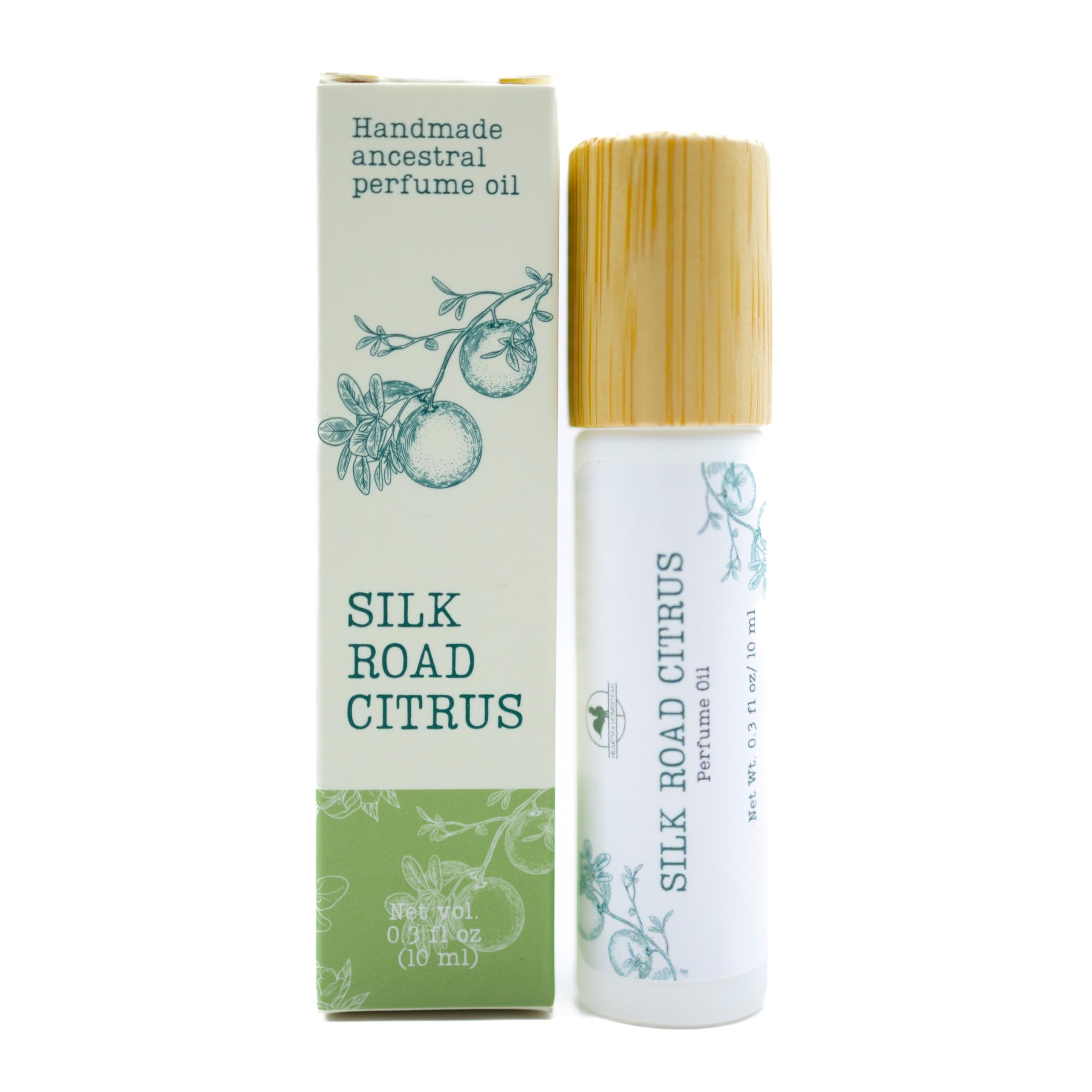 HANDMADE IN VIRGINIA: At Hearth and Homestead, we are a small, family-owned business that holds to high standards for every single ingredient we put in our products. If it's not good enough for our family, it's not good enough for yours. Every product is lovingly handmade and packaged in our homestead studio. Reach out to us directly with any questions or concerns. NATURAL GEMSTONE ROLLER: Housed in a sleek rollerball adorned with a striking green jade gemstone, Silk Road Citrus is as much a symbol of elegance as it is a sensory delight. This gemstone accentuates the perfume's connection to the rich heritage and mystique of the lands that inspired this scent. RESPONSIBLY SOURCED INGREDIENTS: Every ingredient in our natural perfume oils is 100% authentic. We use only responsibly sourced ingredients with traceable origins, including our most rare essential oils: rose, jasmine, and sandalwood (most perfume companies rely on lab-made synthetics to mimic these beautiful fragrances). In a world where many "natural perfume" companies rely on lab-created substitutes, we take pride in sourcing only the most exquisite, rare essential oils. HEART/BASE NOTES: At its heart lies a delicate bouquet of rose, jasmine, and the rare allure of blue tansy essential oils, culminating in what is undoubtedly our most enchanting fruity blend. TOP NOTES: Silk Road Citrus dazzles the senses by blending the sun-kissed zest of mandarin, tangerine, and grapefruit. This bright citrus medley is artfully balanced with subtle hints of lime and lemon, creating a fragrance that dances on the skin.