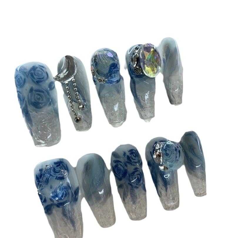 Handmade armor wearing and hand drawn glitter diamond detachable fake nails (Size : L) 1 count (Pack of 1)