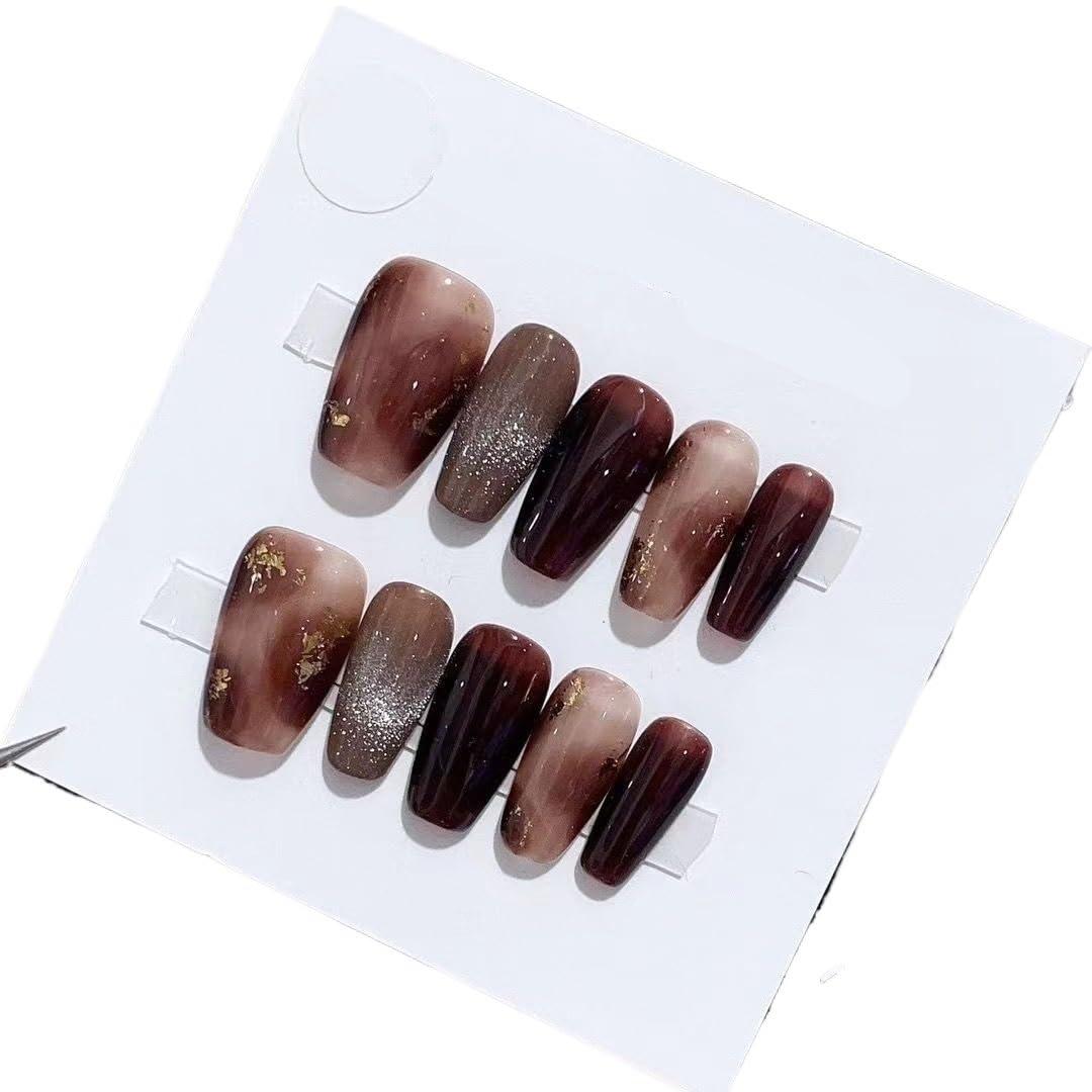 Achieve salon-quality nails at home with these false nails. Detachable false nails for easy removal and change of styles. Wearable false nails for a convenient and long-lasting manicure. Halo dye design adds a unique touch to your nails. Handmade autumn and winter nail makeup for a trendy look.
